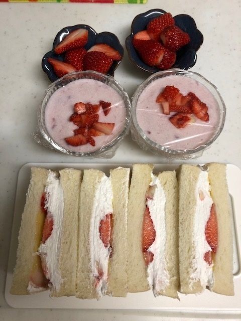 フルーツサンドの他にもフルーチェにトッピングしたり、そのままのいちごも添えて、「いちご尽くし」をより一層楽しみました。