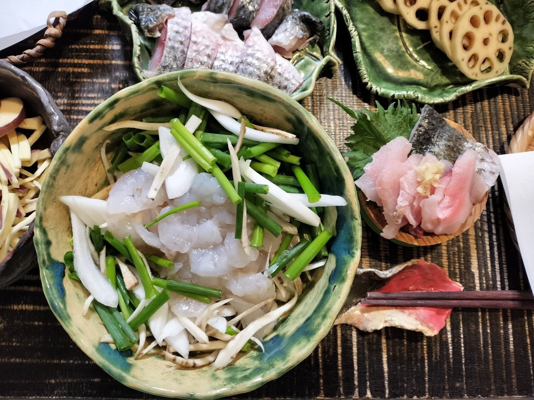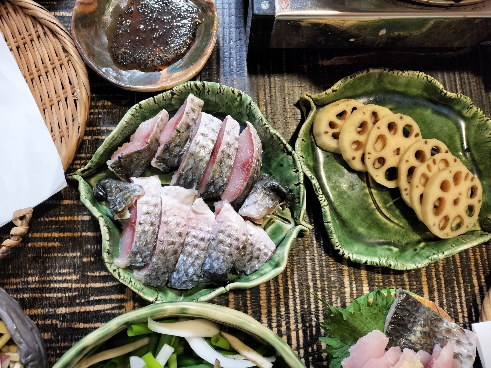 輪切りれんこんの天ぷらとボラの天ぷら