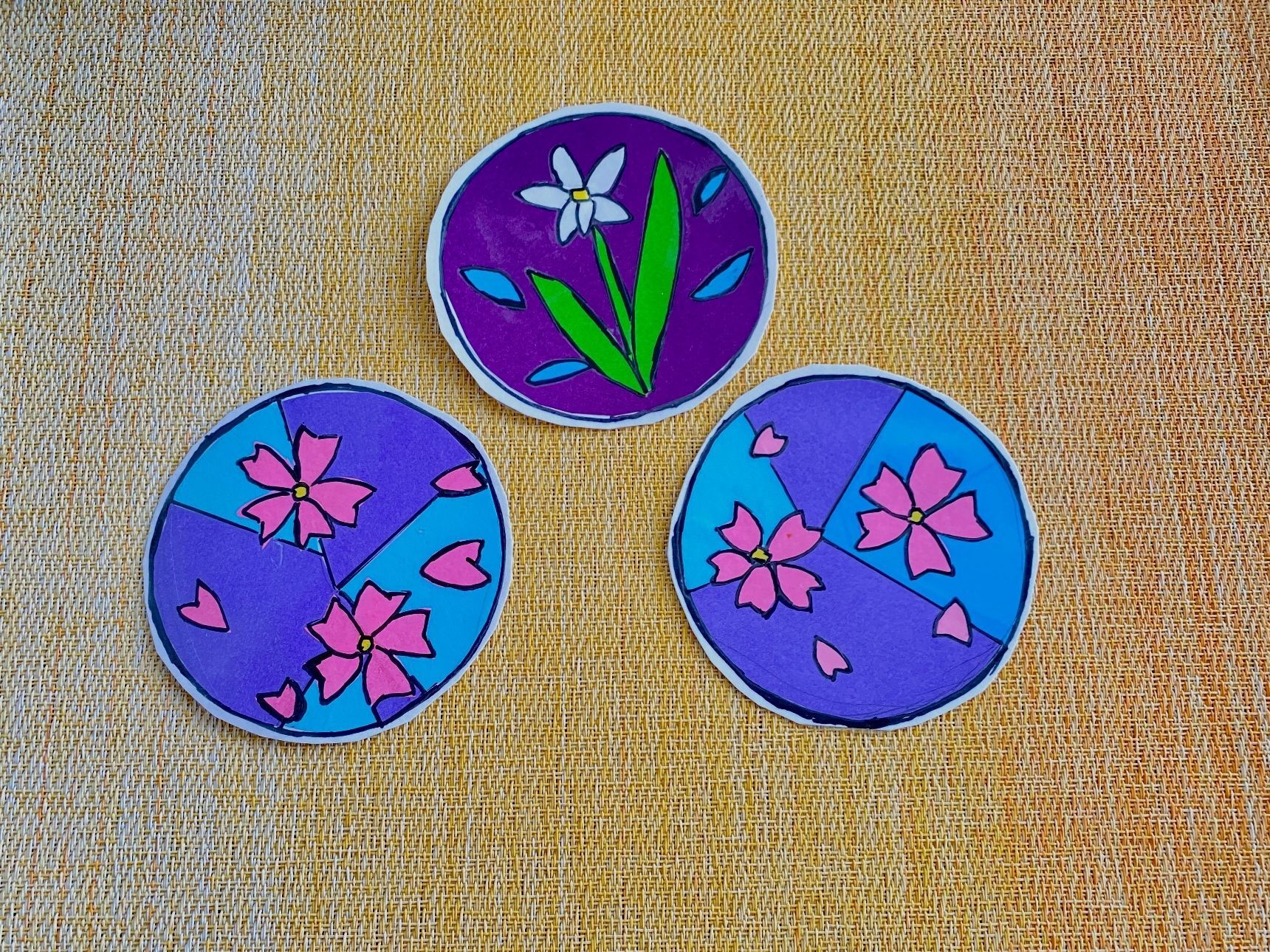 春の植物の柄は、ふきのとう、たけのこ、スズラン、チューリップ、エニシダなどお好きなものをデザインすると楽しいですよ。