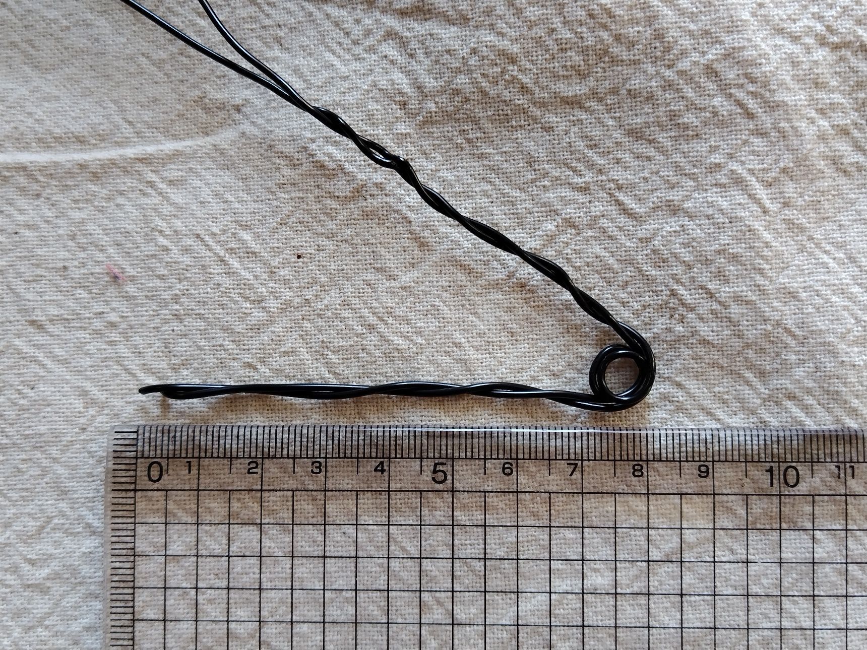 25cmの針金2本を一緒に曲げたりねじったりしてピンの形を作ります。
