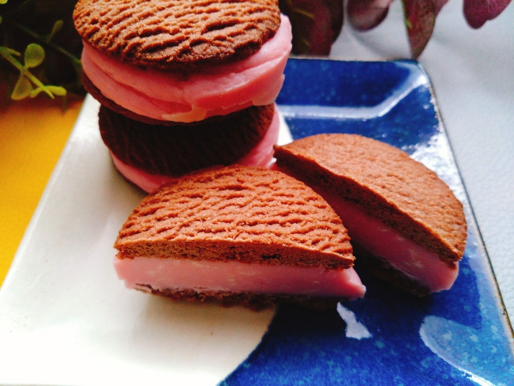 2.クッキーの表を上にして重ね、冷蔵庫で3時間以上冷やしたら、カップの周りからゆっくり切って剥がして完成