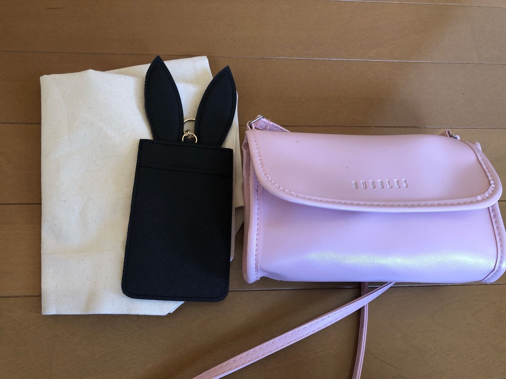 パスケース、ショルダーバッグ、エコバッグ。