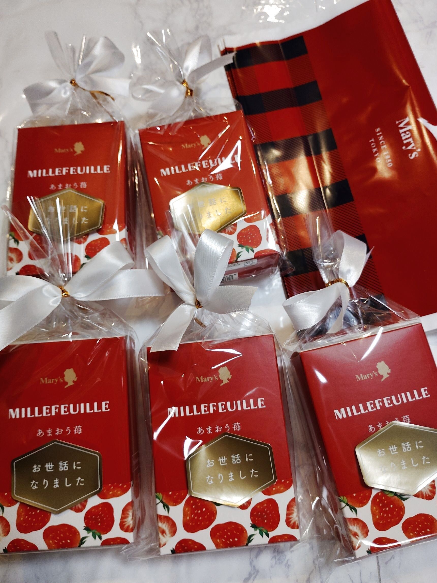 しかも、無料でシールを付けられます!リボンも赤、白、青の3色から選べて、無料でつけてくださいます。