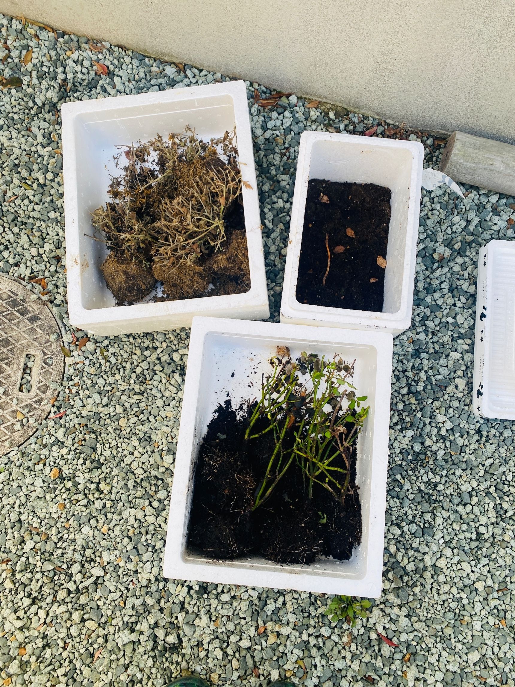 時期的には0度を下回ることはなくてもまだ寒いため、使っていた発泡スチロールの上に置きました。