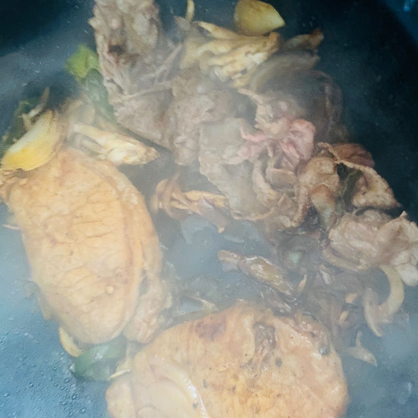 牛肉スライスは一口大に切り、スライスした玉ねぎ、ピーマン、手で割いたしめじを入れてよく炒めます。