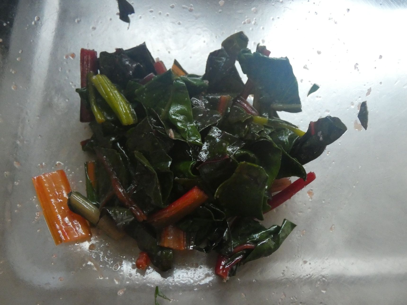 スイスチャードは4cmくらいの長さに切ります。