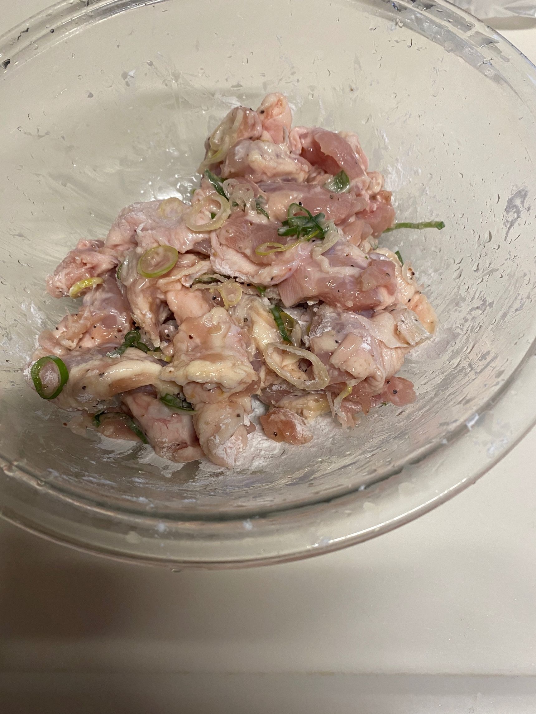 鶏ももの肉は一口大に切ってアイラップに入れて、塩麹、小口切りにしたねぎ、レモンの搾り汁をかけてよく揉み、一晩寝かせます。片栗粉をまぶして揚げ、よく油を切ります。冷めても柔らかいので、お弁当のおかずにもオススメです。