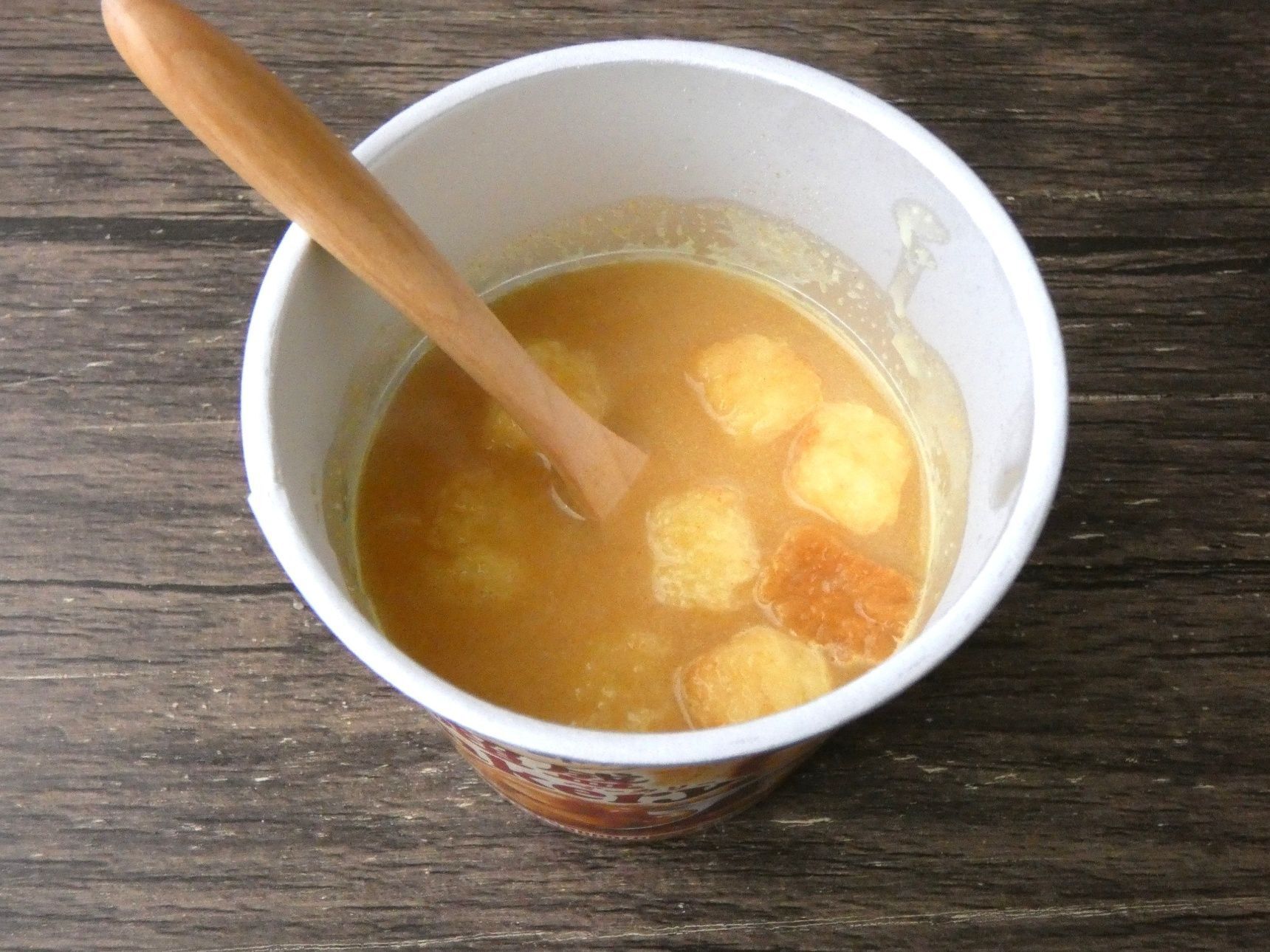 普通の作り方だとそのまま内側の線までお湯を注いで、1分くらいかき混ぜたら完成。