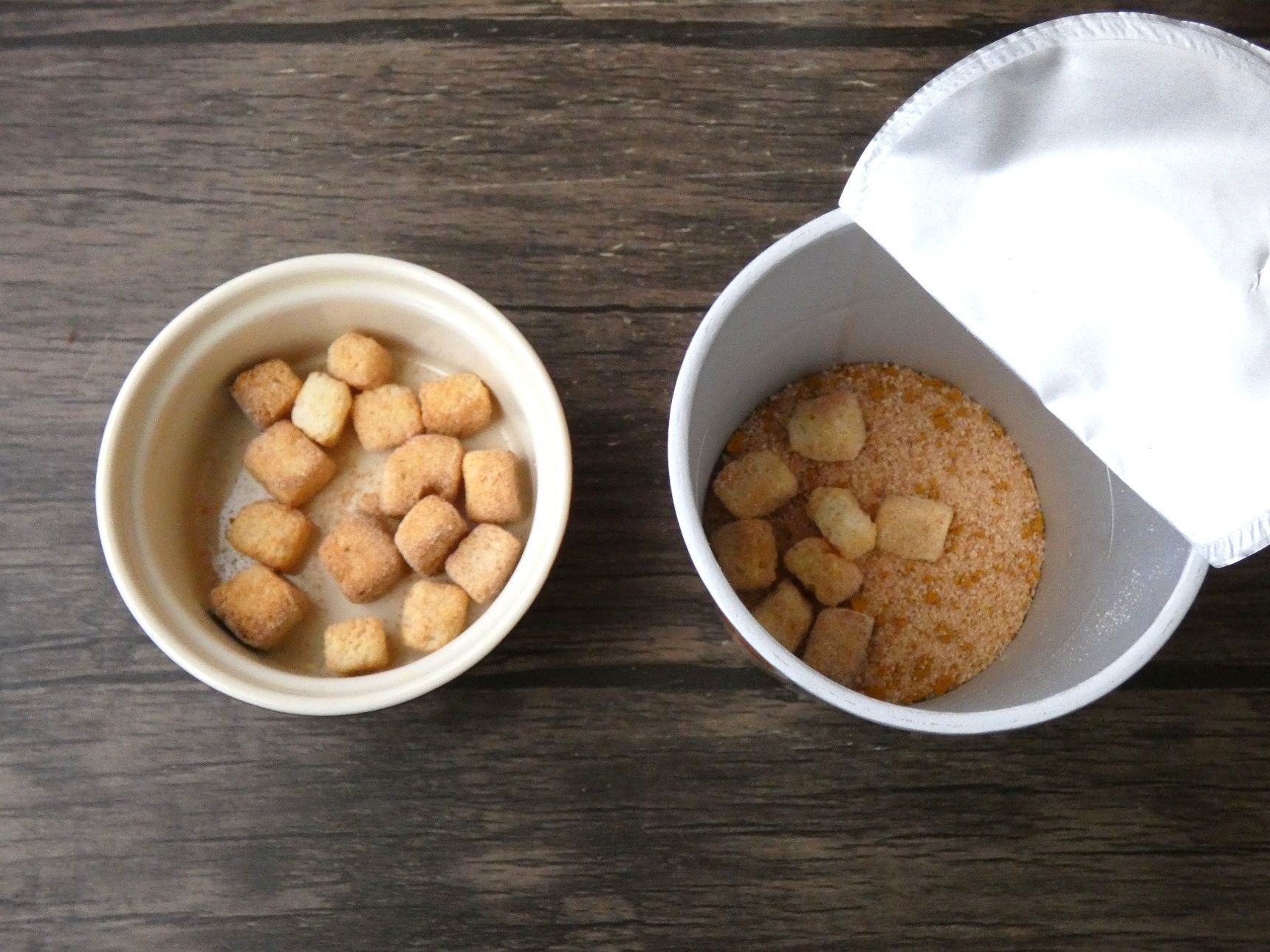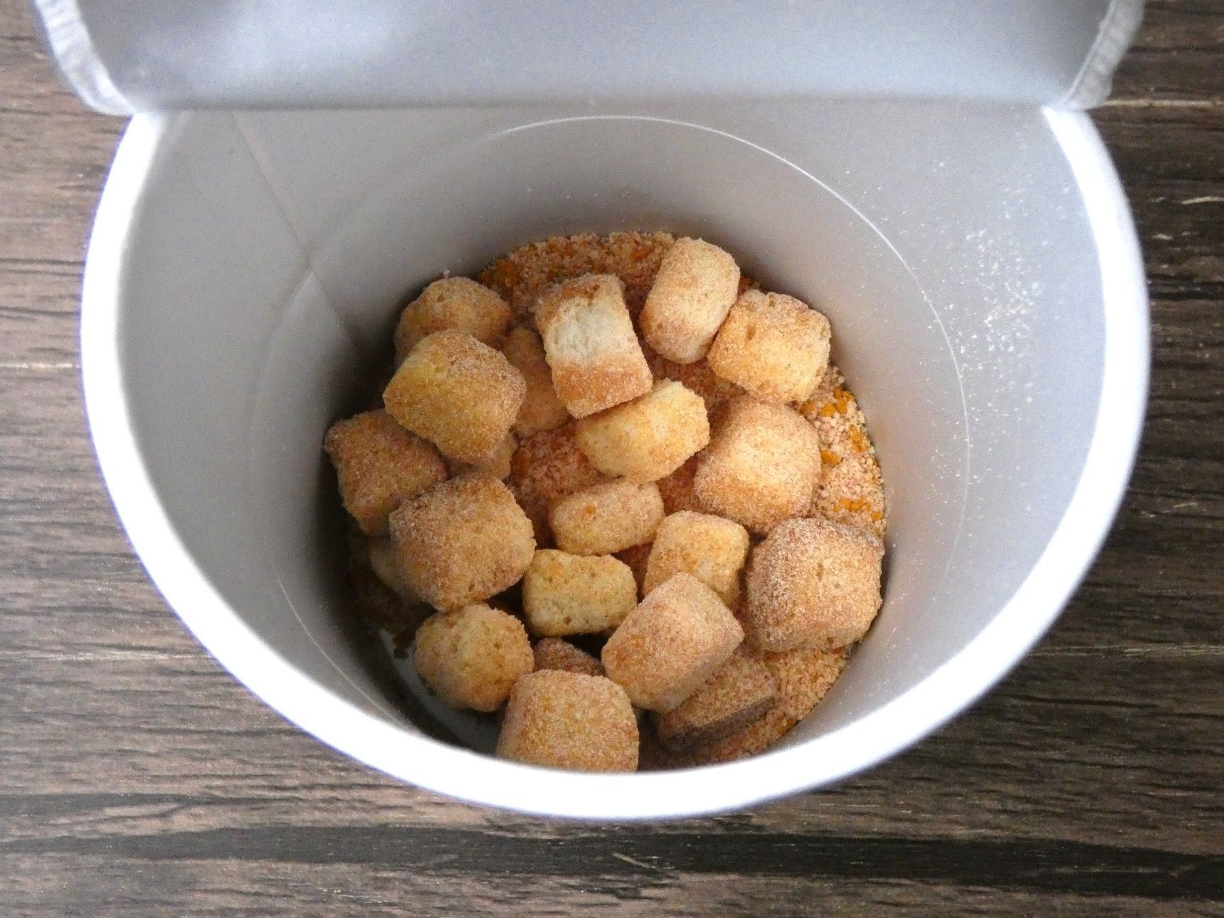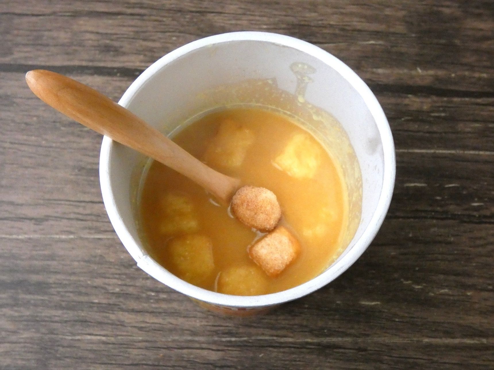 ですがこれだとサクサクパンがだんだん水分を吸ってじゅわっとしたパンに…。そこで、お湯を入れる前に2/3くらいパンを取り出します。