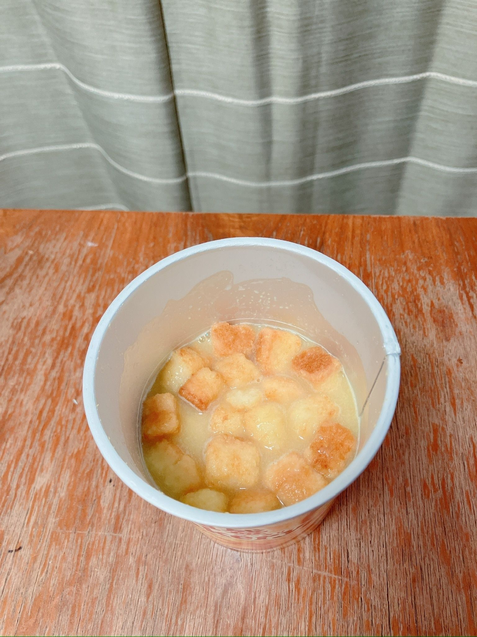 熱湯を200ml注いですぐに10秒かき混ぜます。その後1分おくと写真のような状態に。