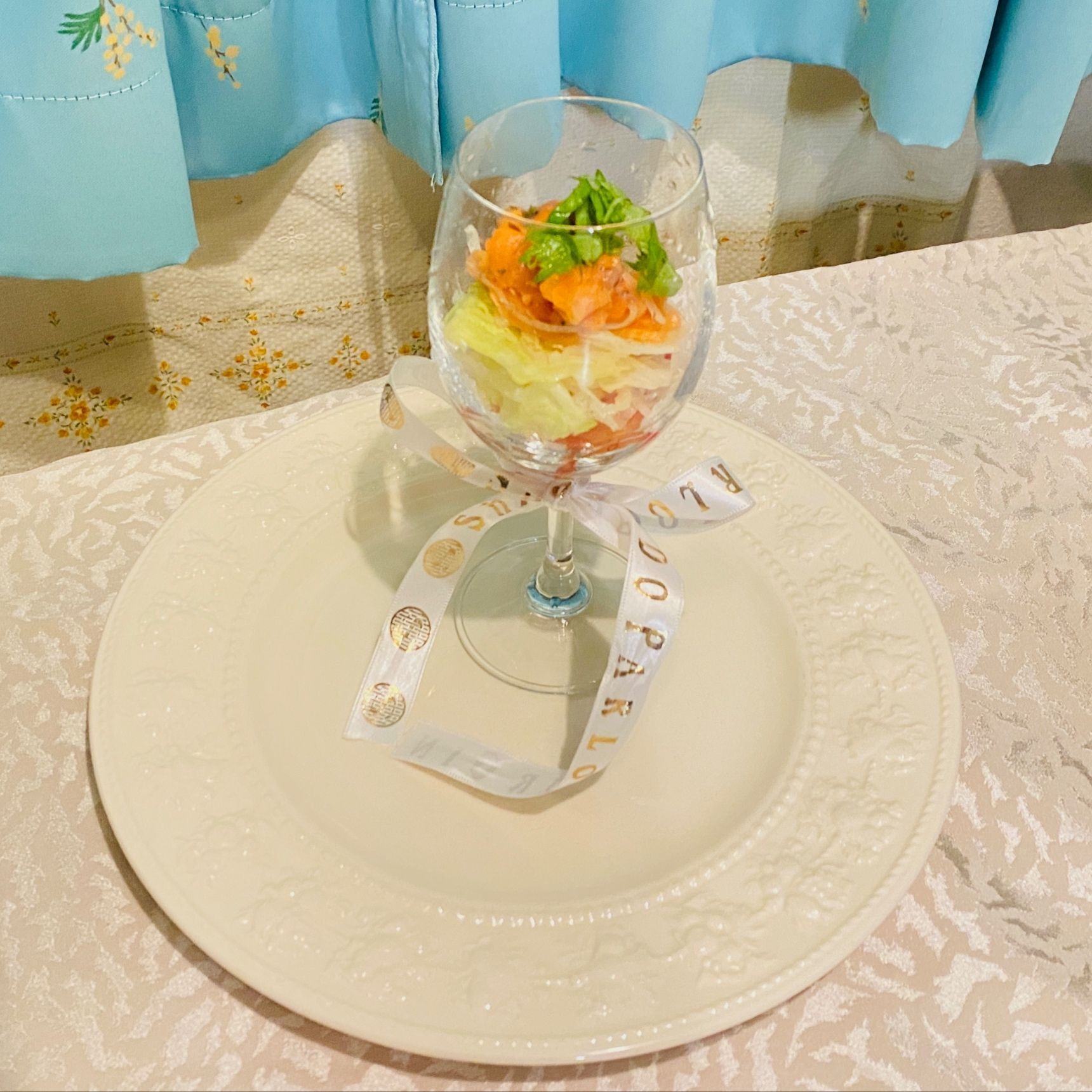 小鉢に盛り付けても構いませんが、眠っているワイングラスに盛り付けると、グンと高級感があって美味しく演出できますよ〜