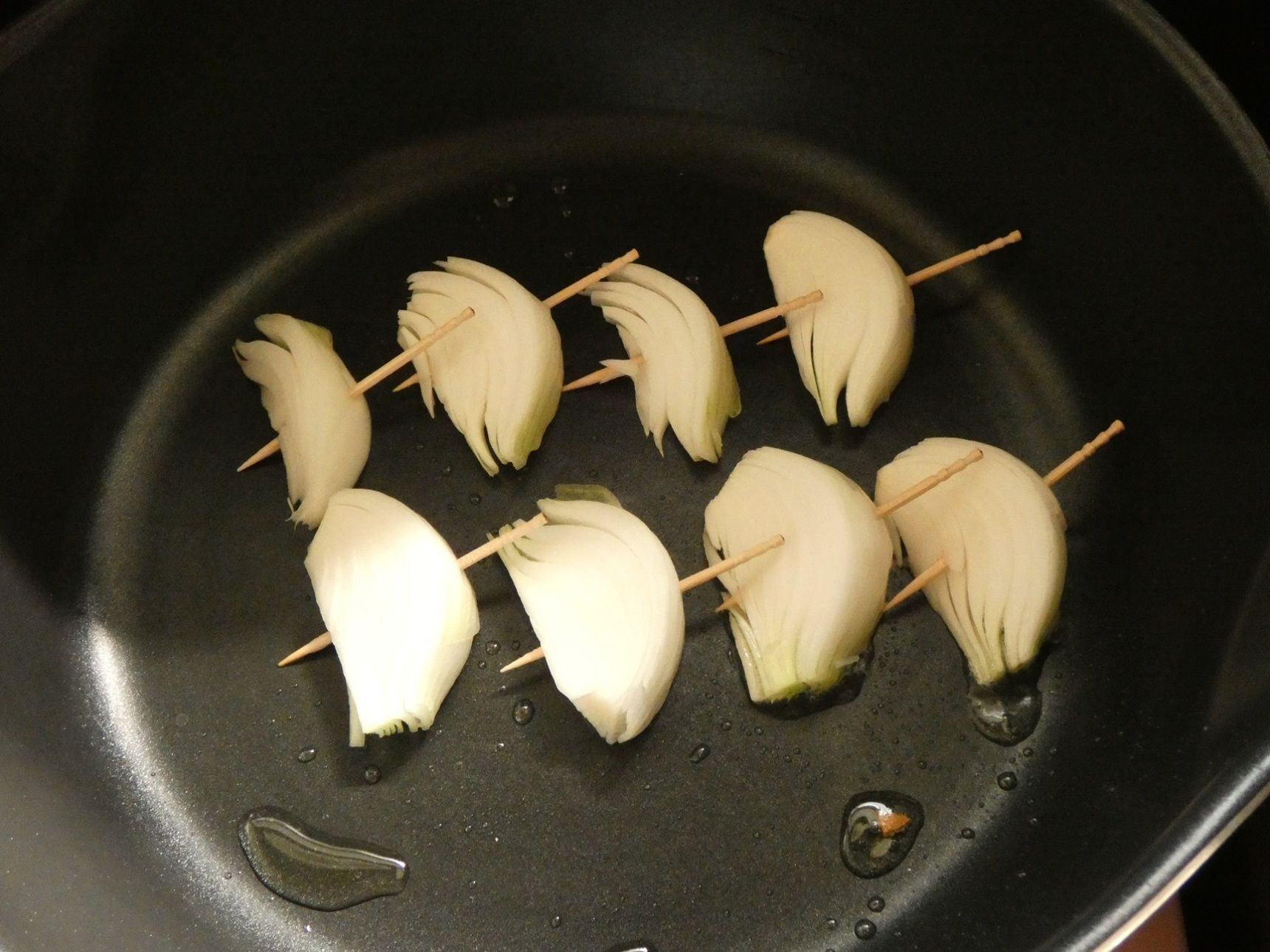 玉ねぎはくし形切りにし、楊枝で止めます。