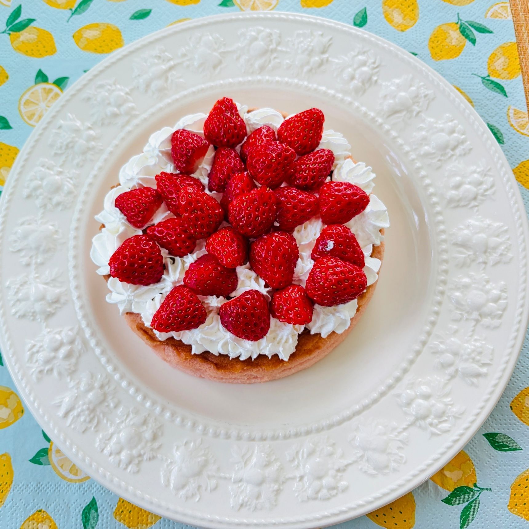 いちごが美味しい時節ですので、いちごでデコレーションしてみました。温かい紅茶を添えてお召し上がりください。 お値段もお手頃です。休日のティータイムの時間にいかがでしょうか。