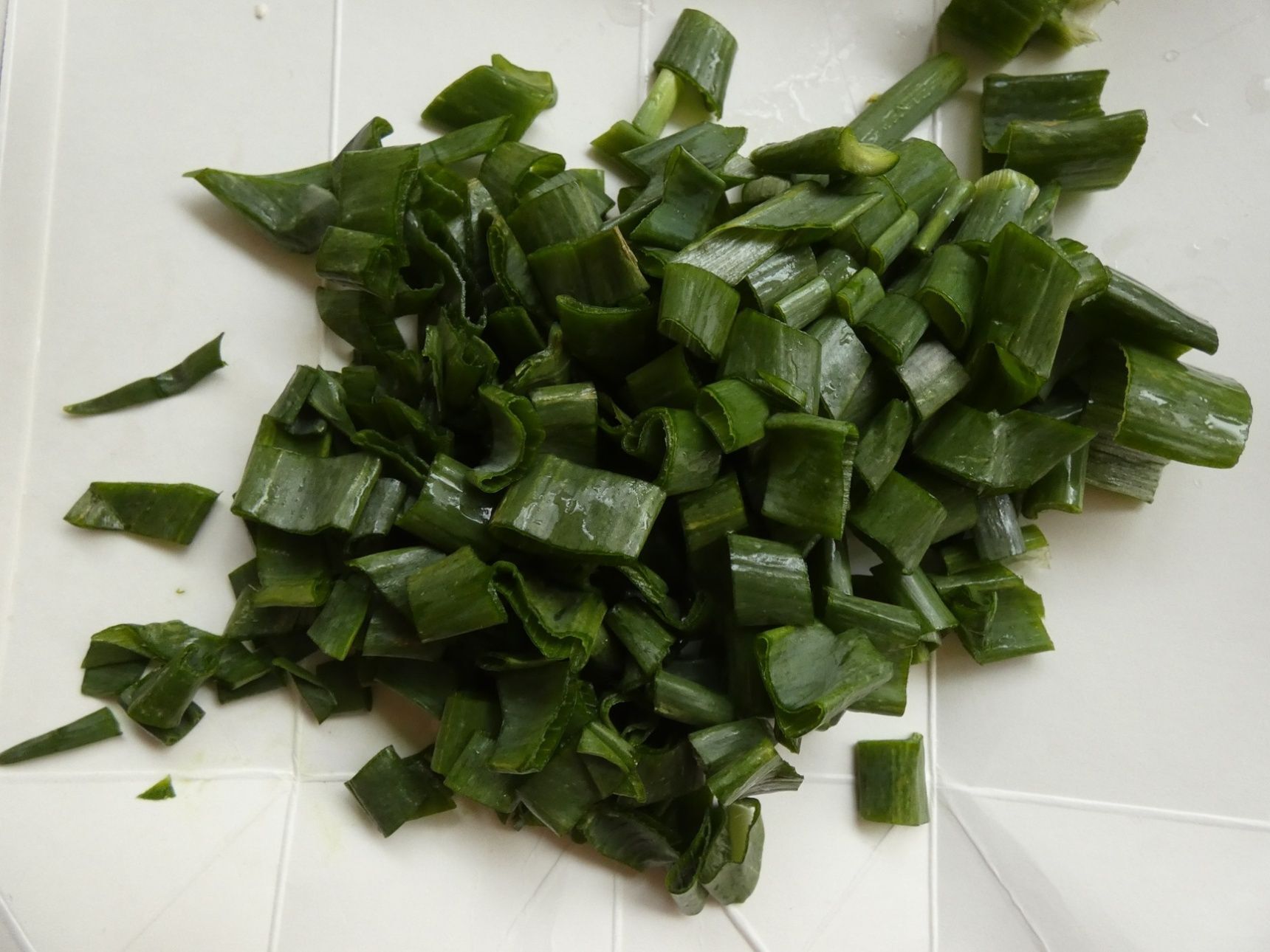 新玉ねぎの葉は1.5cmくらいに切ります。