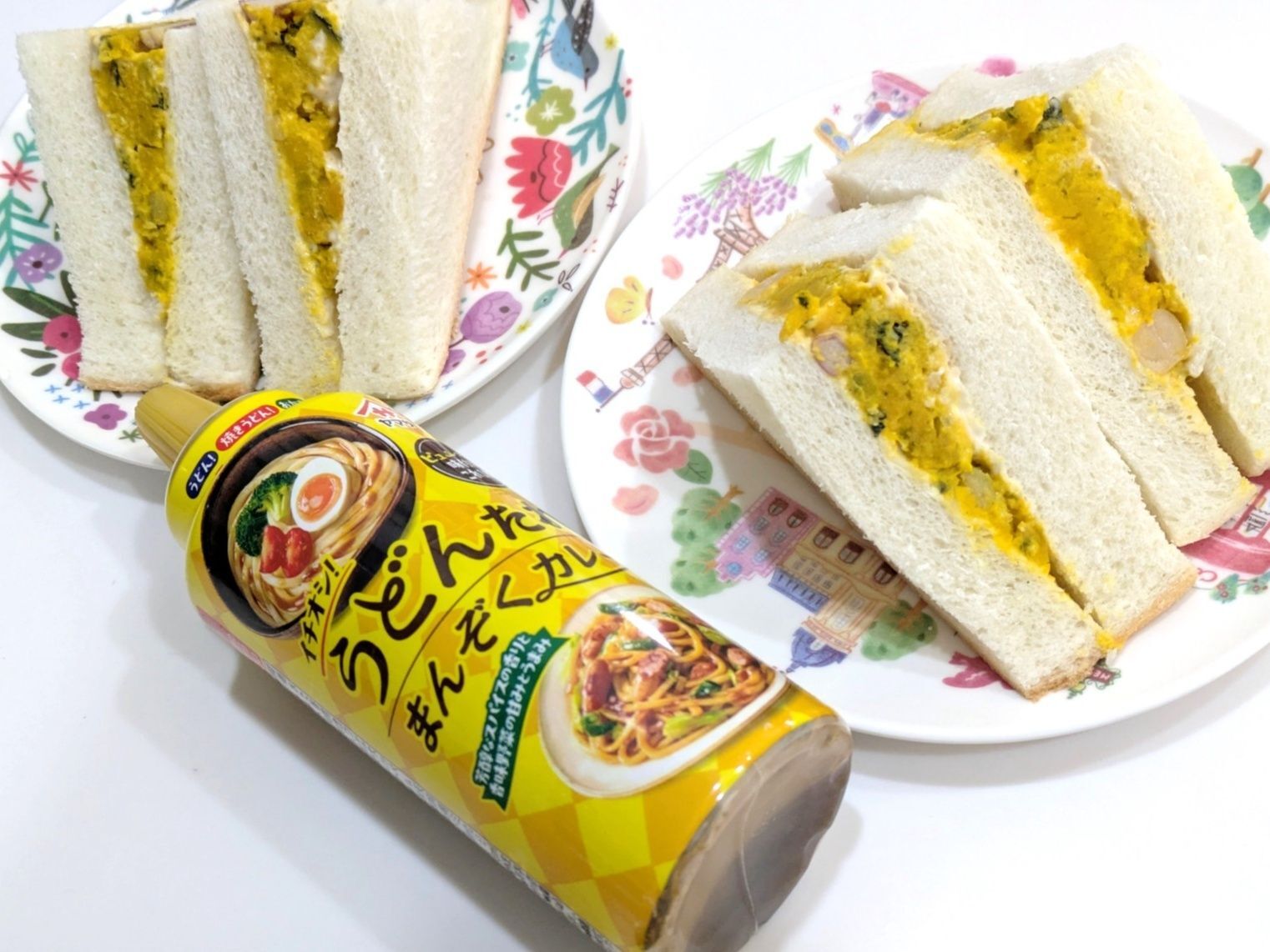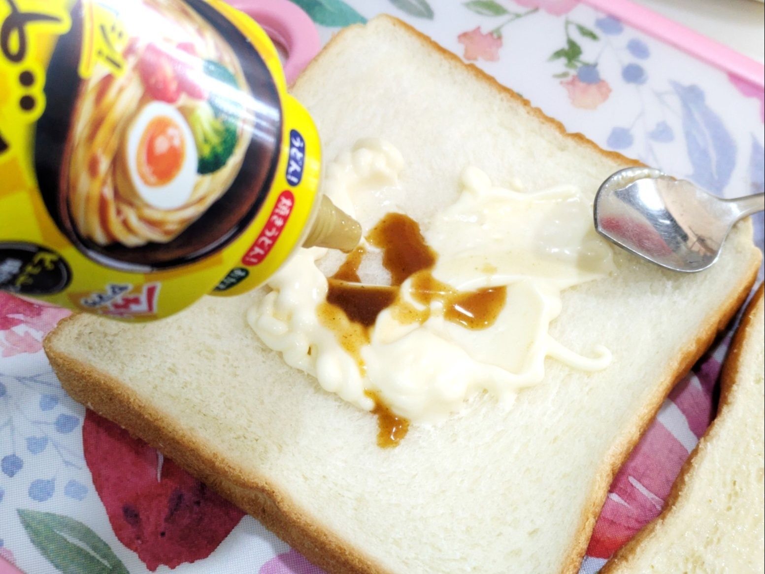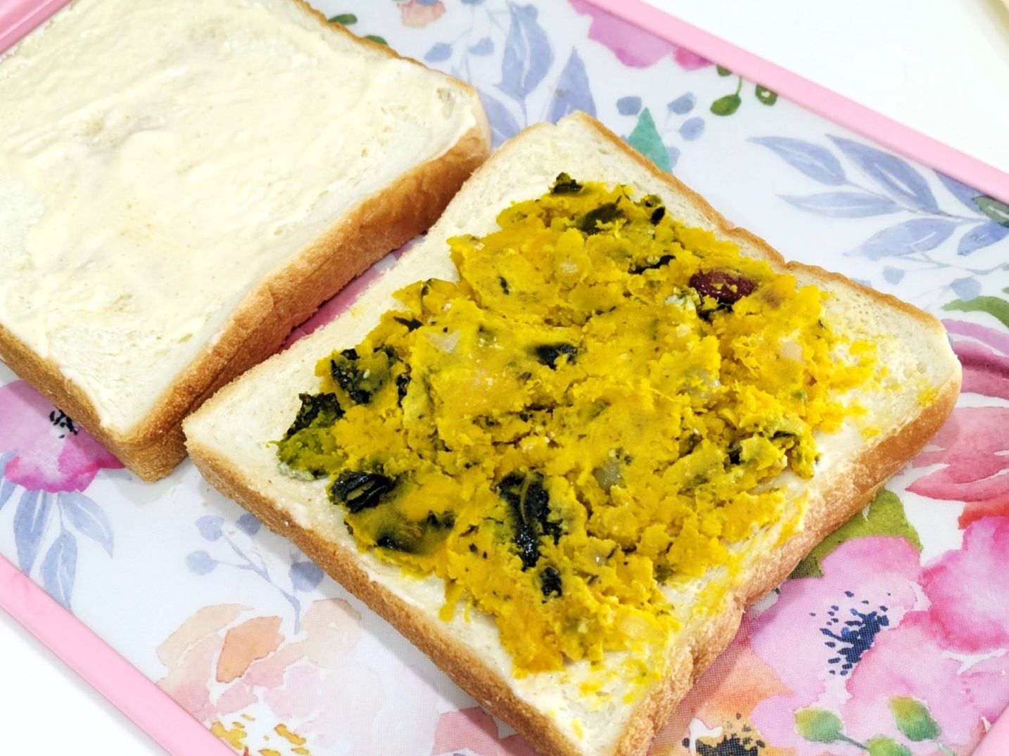 パンにマヨネーズ&【うどんたれ】をつけてのばし カボチャのサラダをサンド