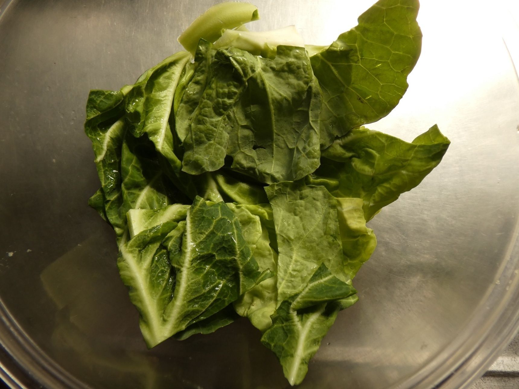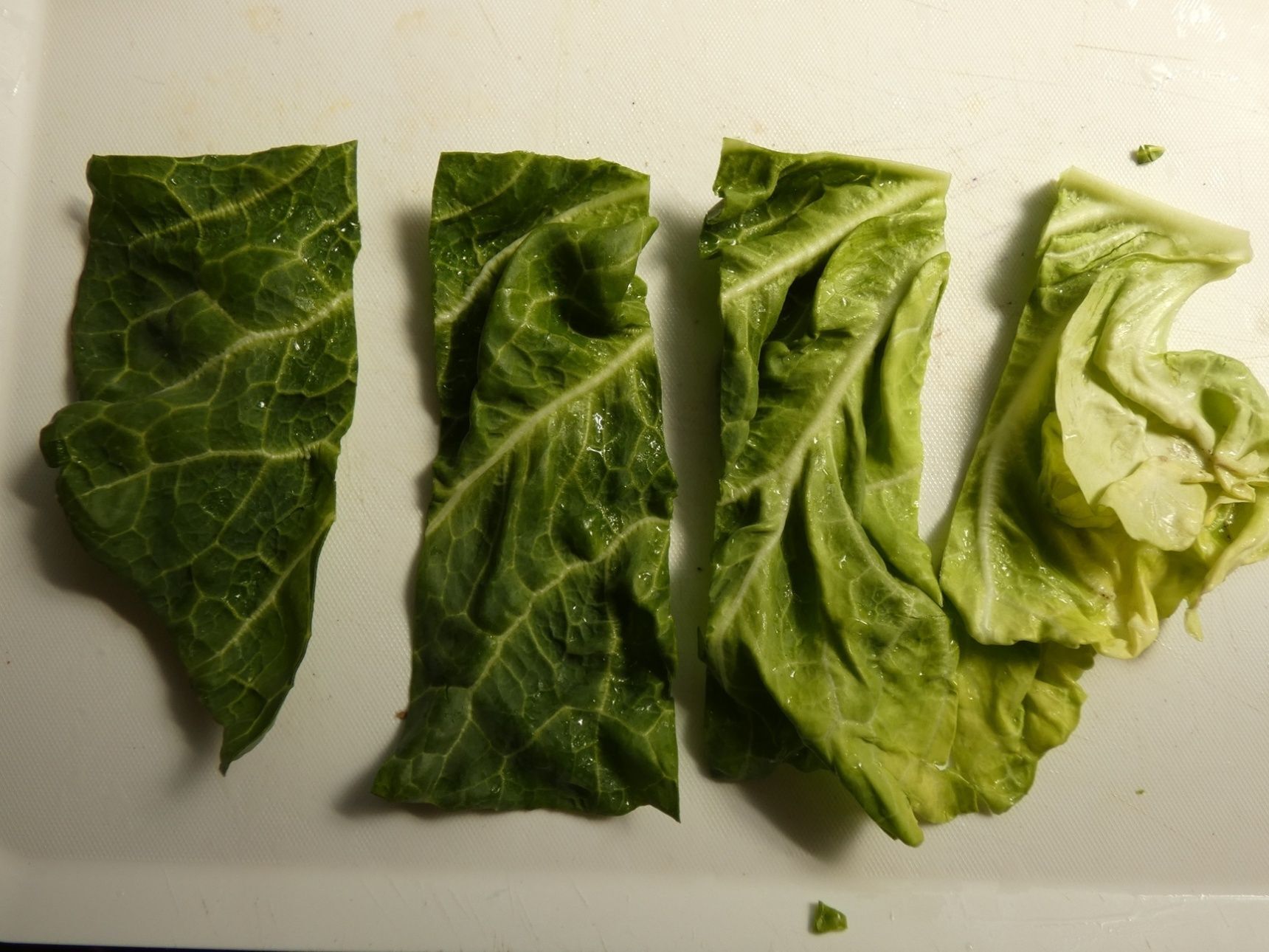 キャベツは白い部分を取って薄切りにし、葉は8等分にします。