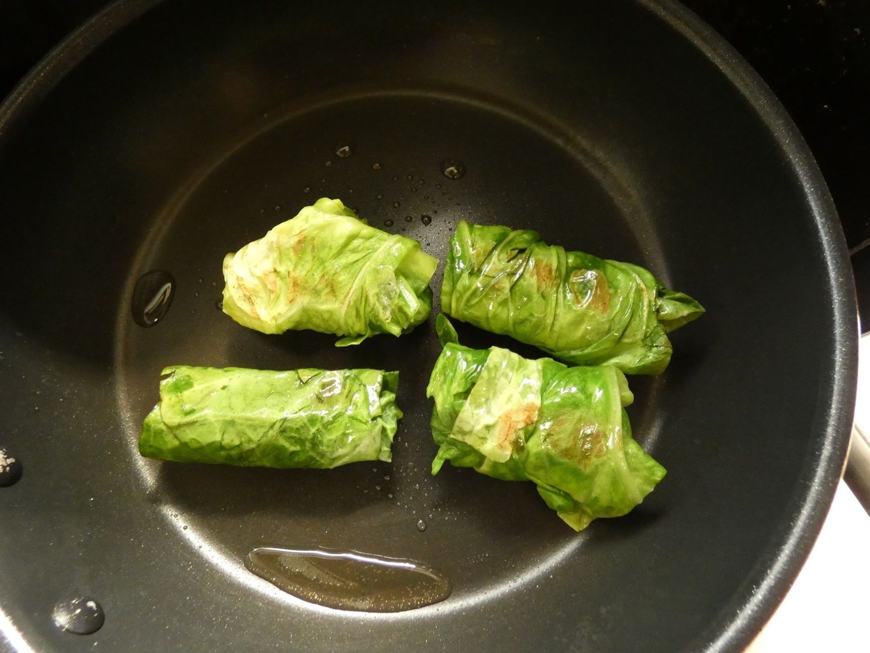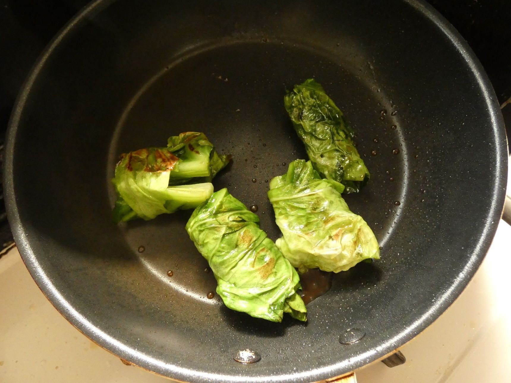 フライパンでキャベツを転がしながら焼きます。