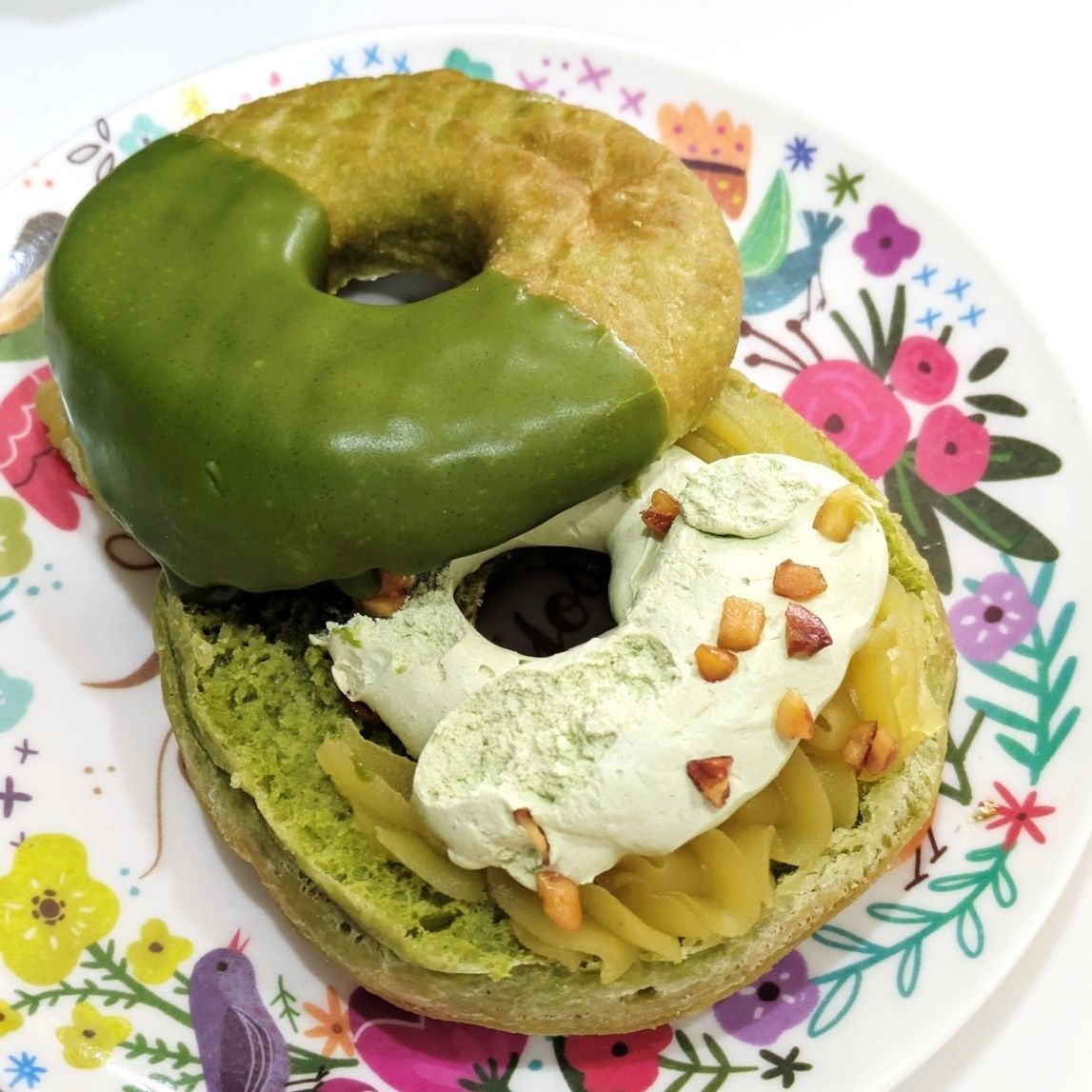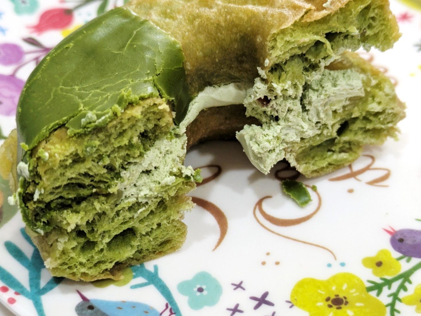 宇治抹茶を練り込まれた生地は、ドーナツというよりはデニッシュのようなさっぱりした味わい。でも食感はふんわり?いや…もちっともしている?ような不思議な感じです!