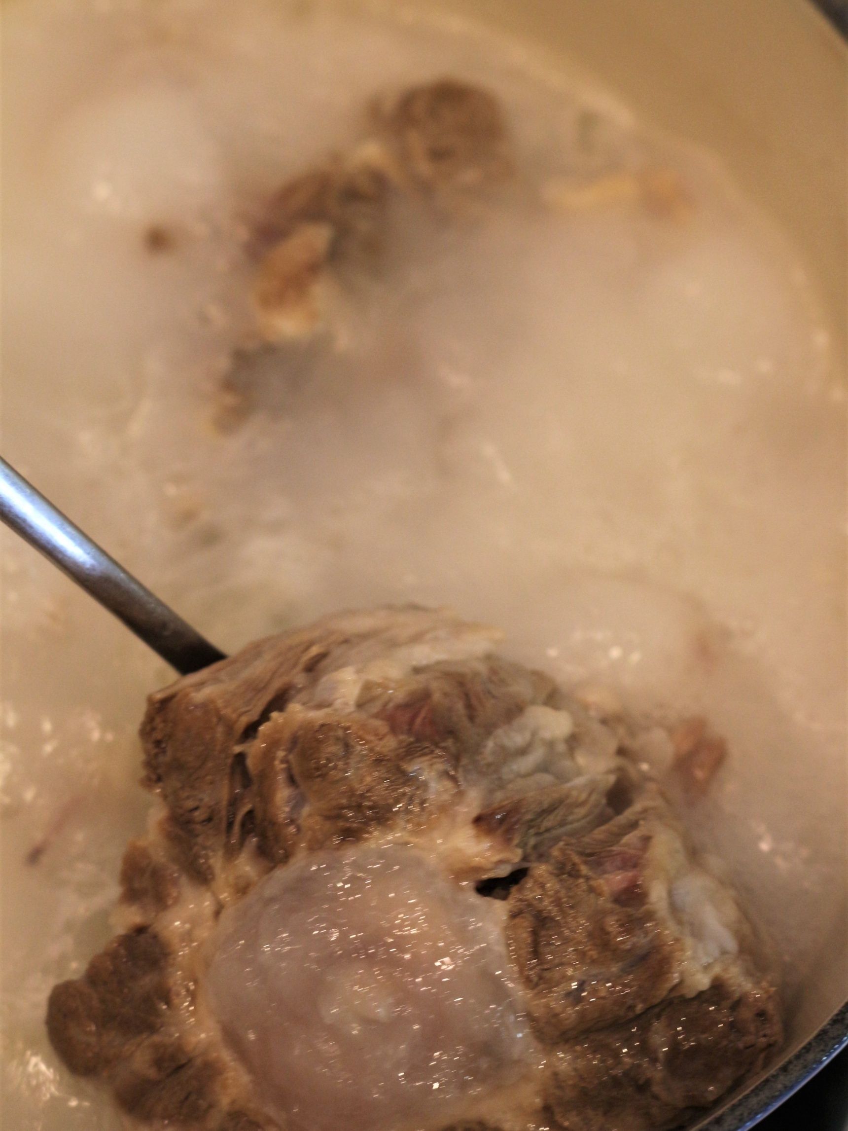 テール1kgに対して鍋は4ℓ容量用で水は鍋の2/3ほどまで煮込む。