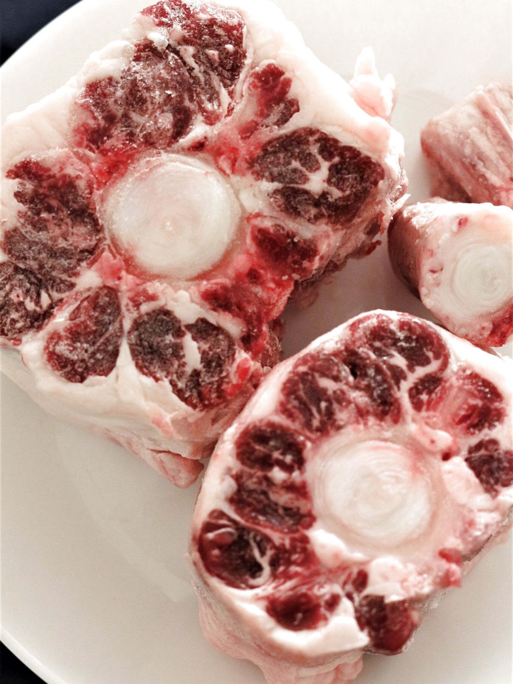 ①テールを水につけて血を抜く(2度ほど水を変える)。血抜きは4〜5時間で少し出るとOK(血抜きは匂いと雑味消しです)。