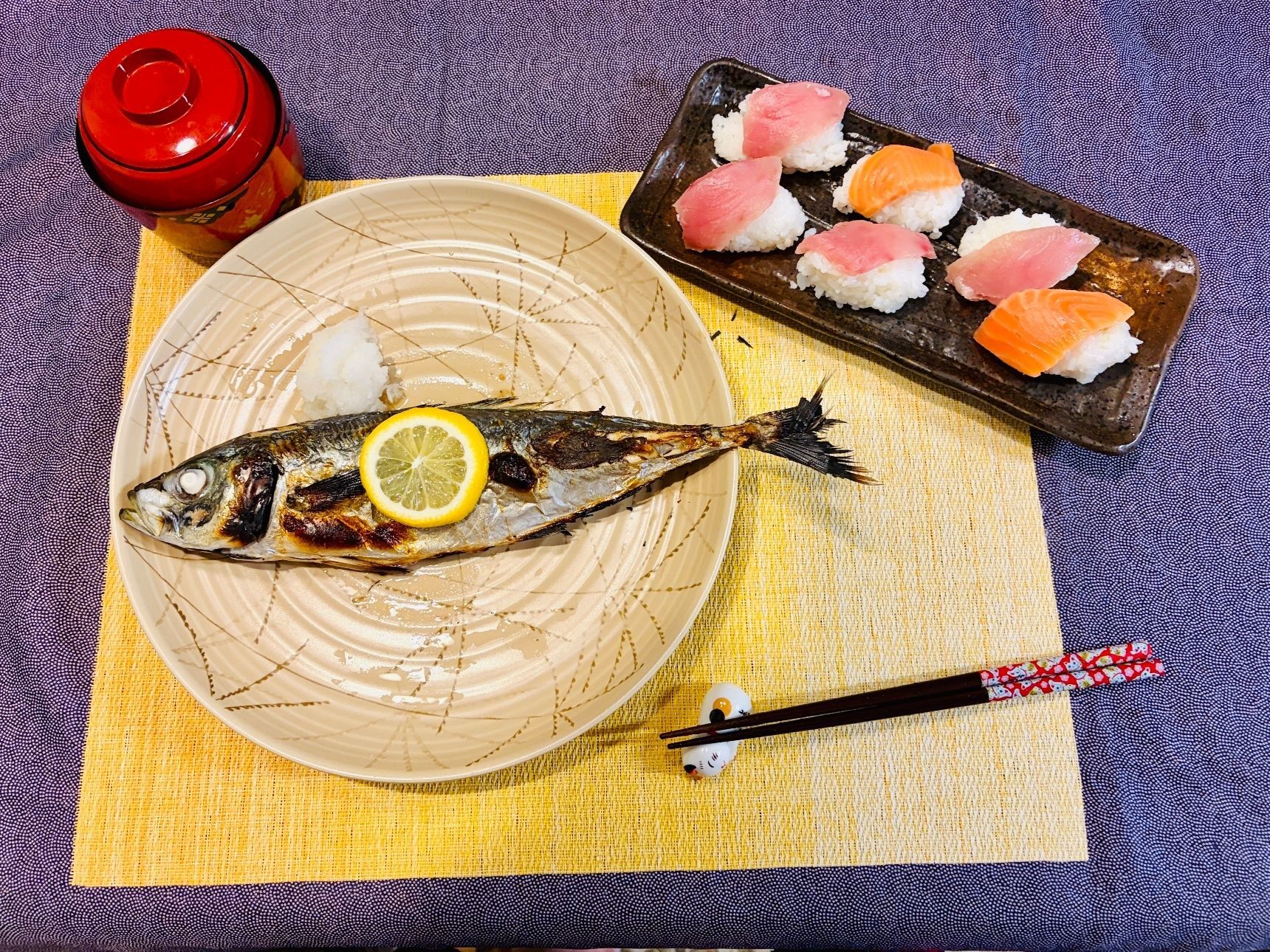 切り込みにレモンを入れてあじを焼いたので、レモンの爽やかな酸味の組み合わせで、魚の臭みも消えて美味しいですよ。