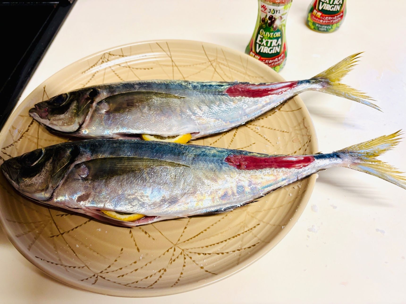 1尾30cmの大皿を超える大きさの天然の真あじです。