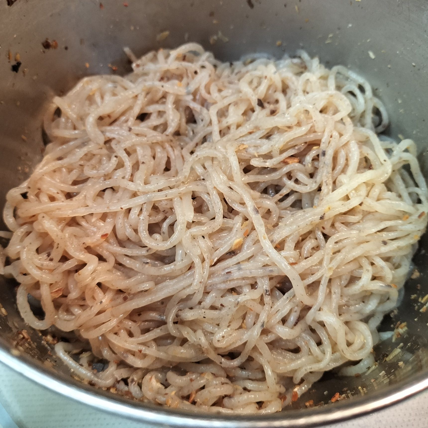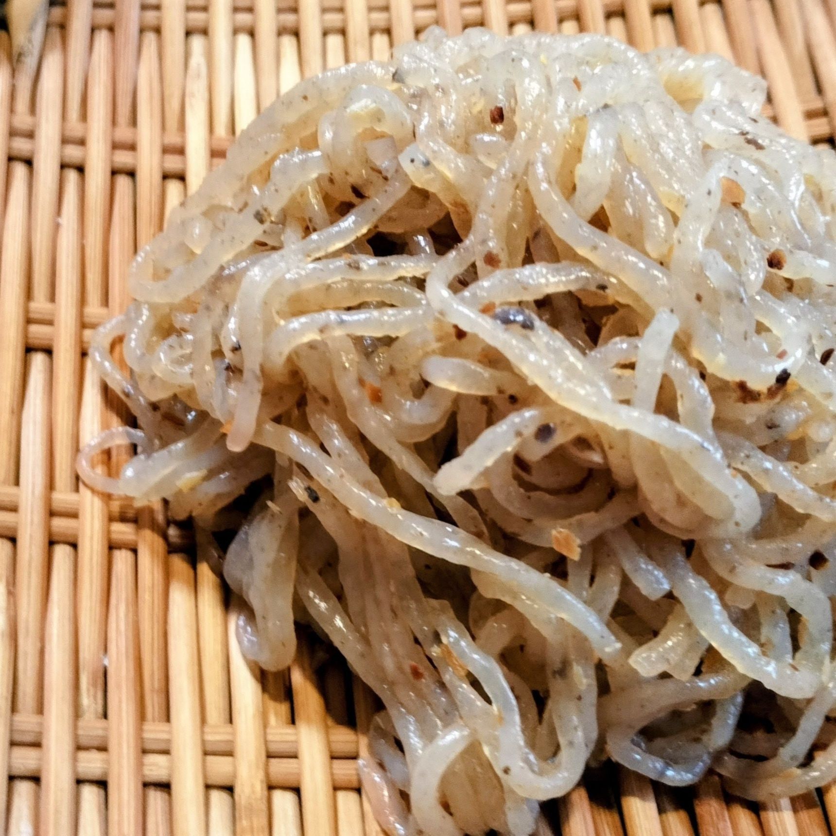 ※糸こんにゃくに、めんつゆと煮干しの旨味・風味がほんのりと付きます!(下味程度の薄味) また、水分を飛ばした糸こんにゃくは、プリッとした食感になります!