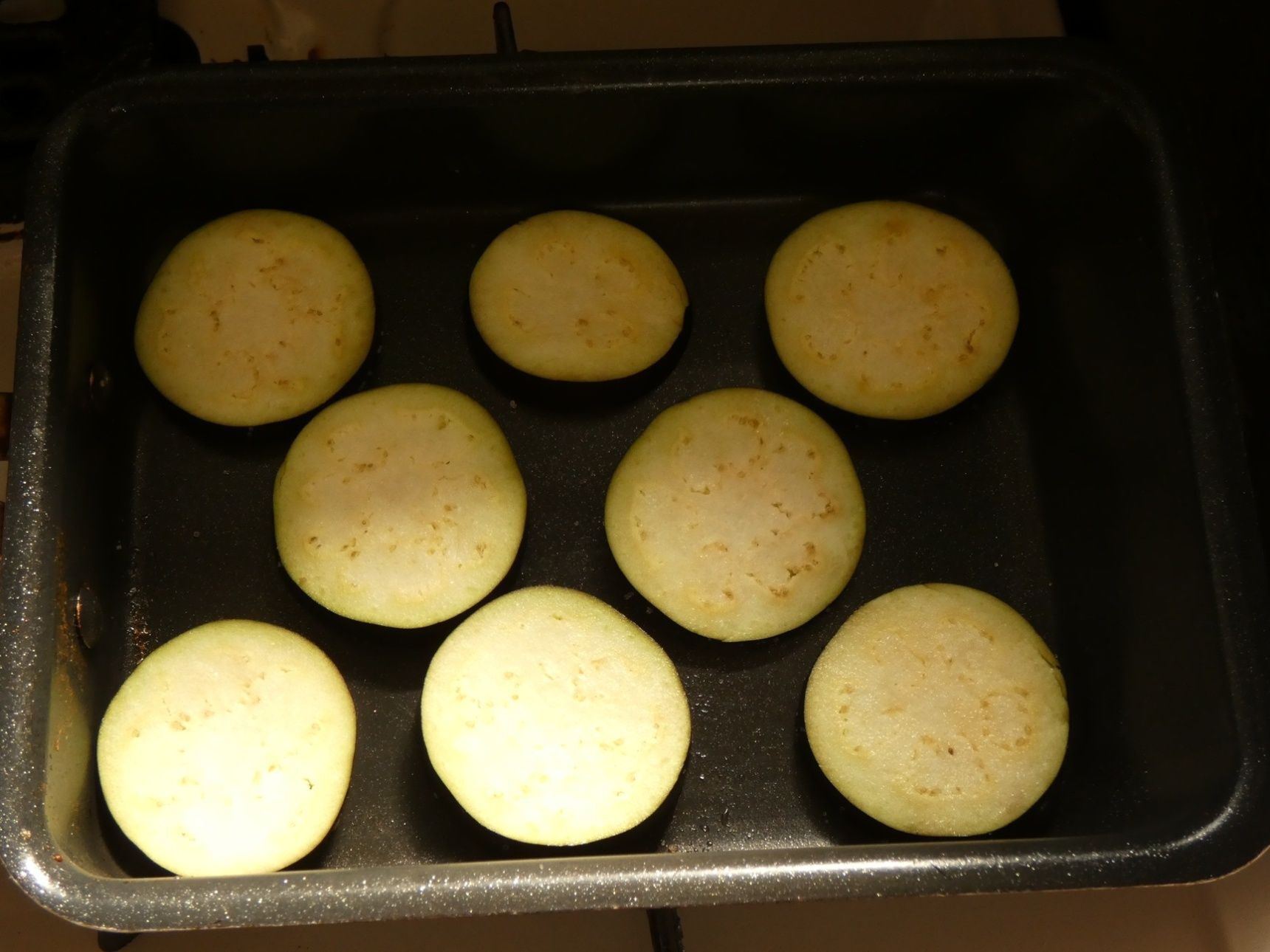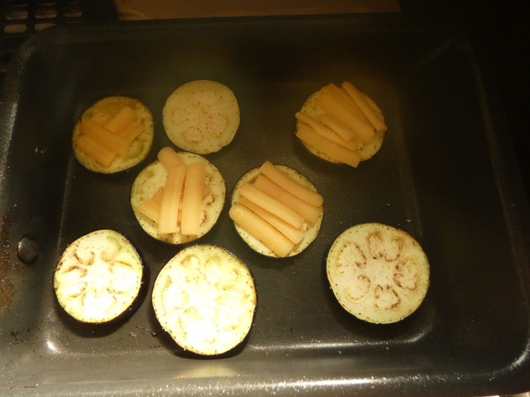 ナス8個にピザ用チーズを乗せて、残りのナスを上から乗せます。