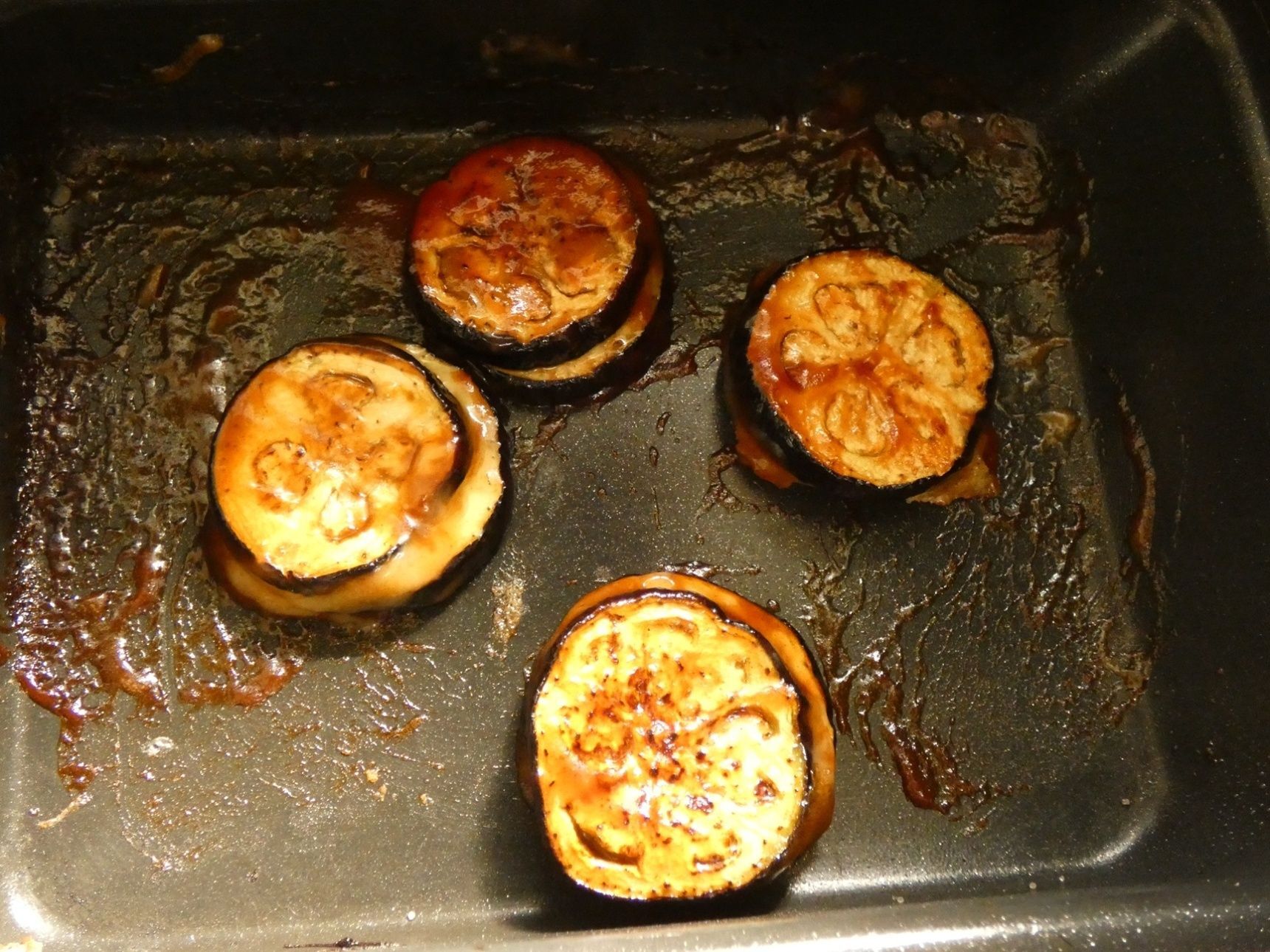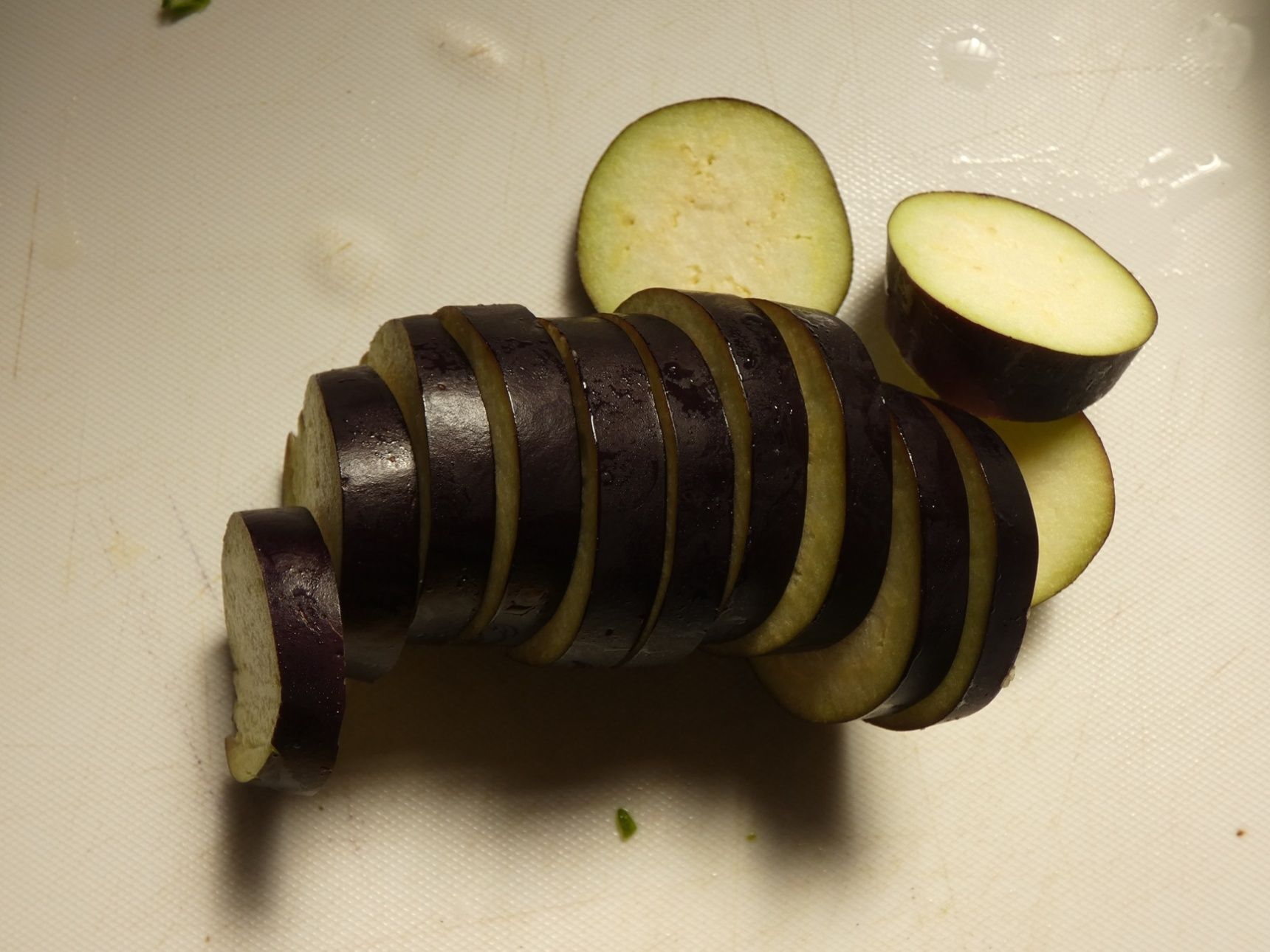 ケチャップと中農ソースを混ぜ合わせ、ナスに絡めて完成。