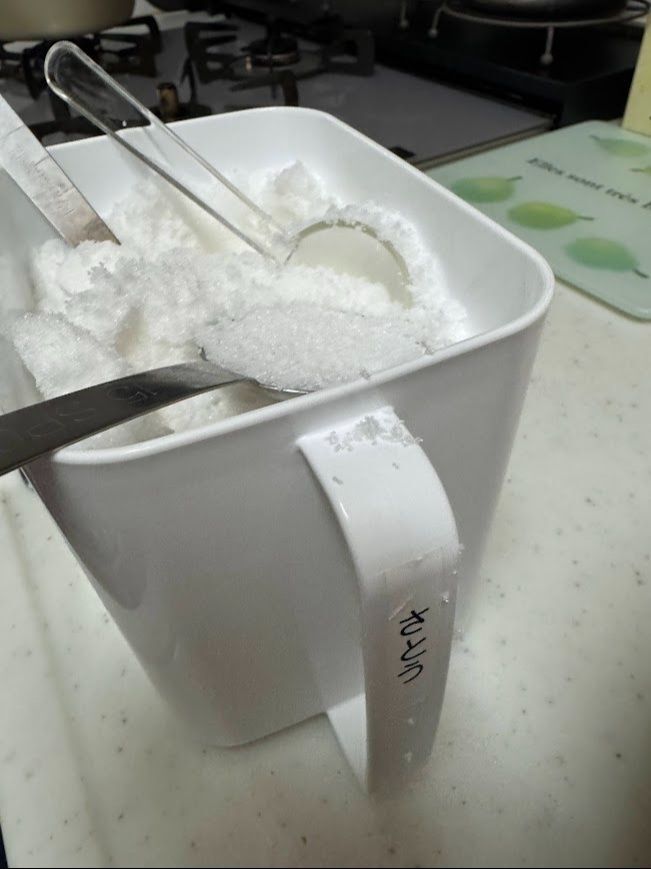 次に砂糖を加え、混ぜます。