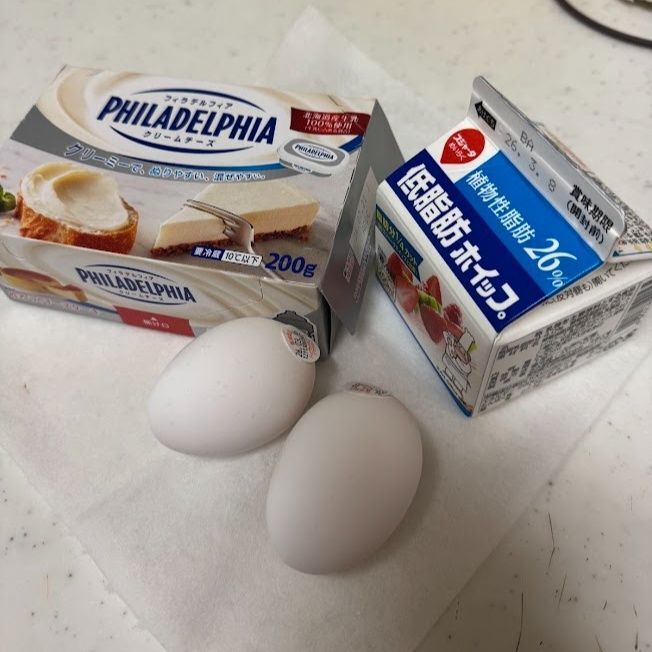 クリームチーズはいただき物、生クリームは特売、ほかもうちにある物で作れました。市販の「ベイクドチーズケーキ」を購入するよりも材料費は格安です。