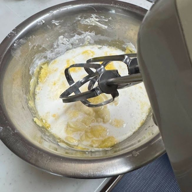 ハンドミキサーでよく混ぜます。