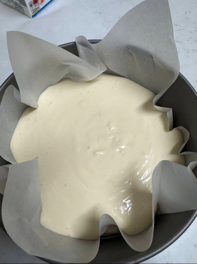 焼く前に3cmの高さから2〜3回落として空気を抜いておくと綺麗に仕上がります。