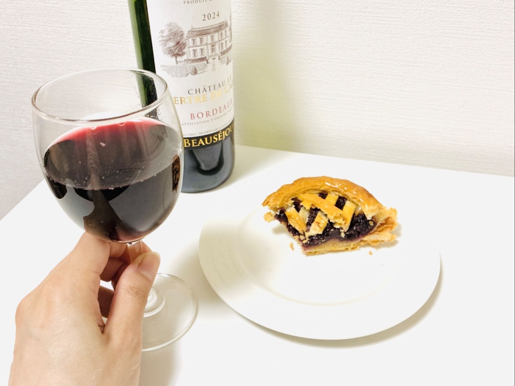 リッチなパイに合わせたのは、ドラッグストア コスモスで698円でゲットした赤ワイン(笑)。