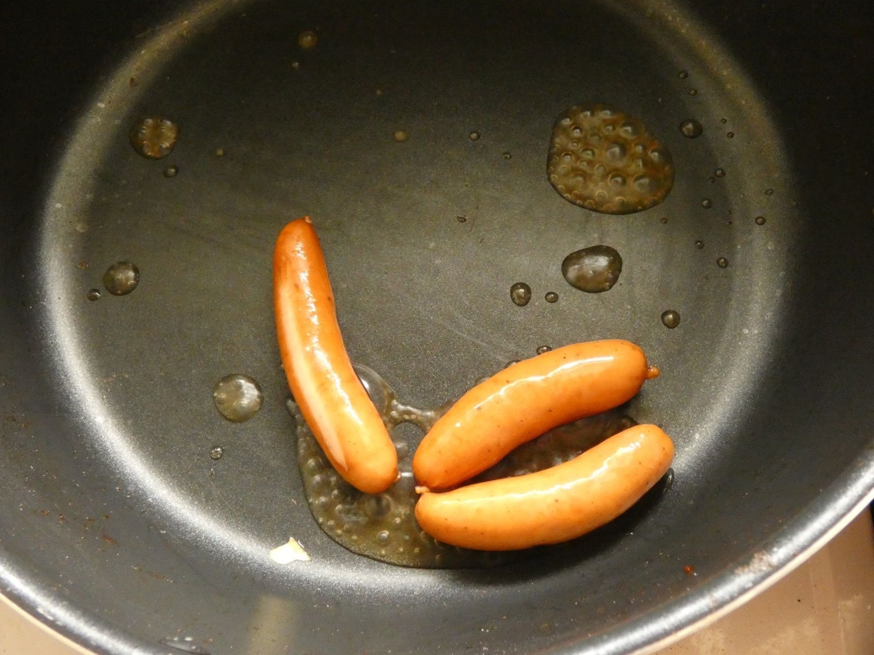 フライパンに水大さじ1とチョリソーを入れ、パリッとしたら取り出します。