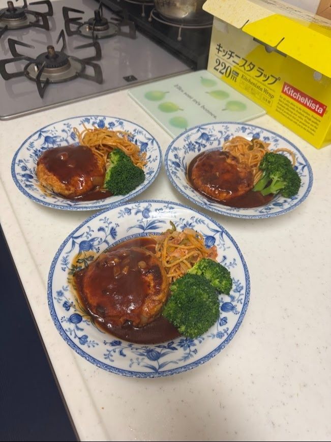 ソース(料理酒・ケチャップ・ソース)が味が濃いのでハンバーグのタネには隠し味程度の味付けです。