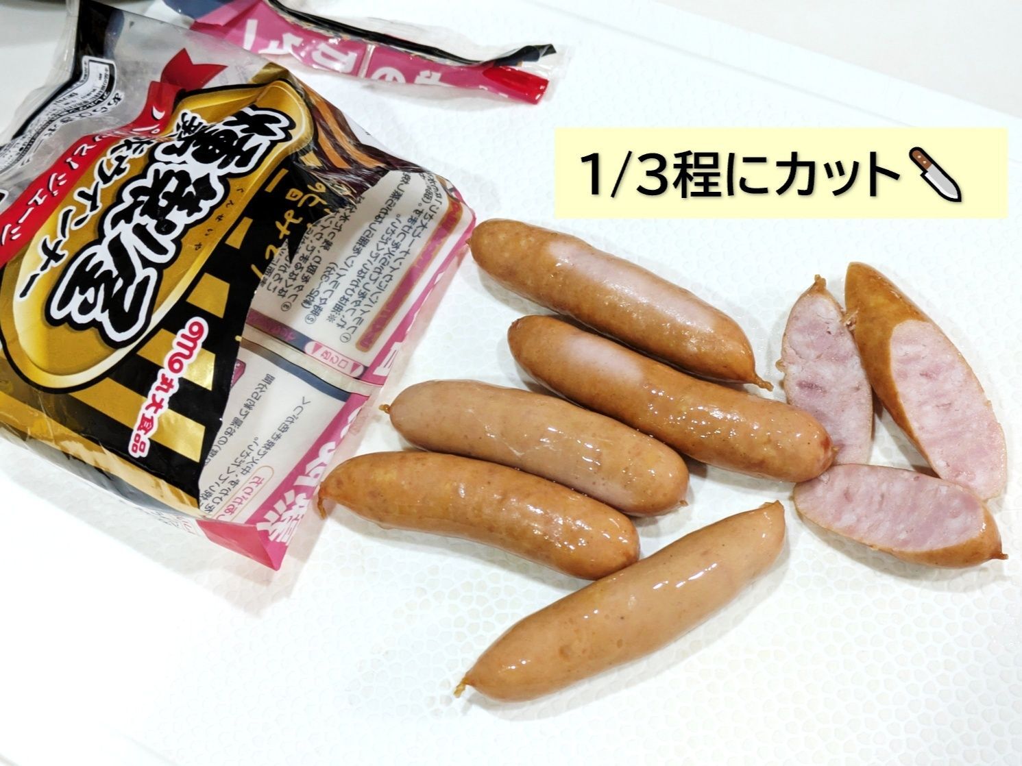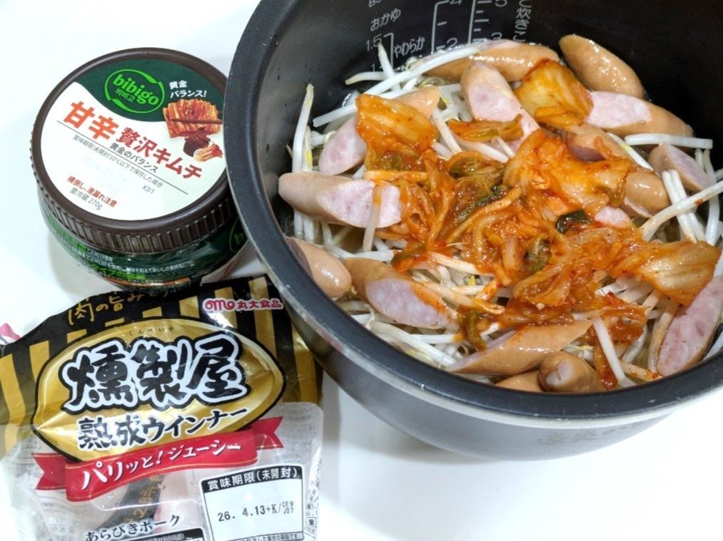 カットしたウィンナー、もやし、キムチは上にのせるだけ