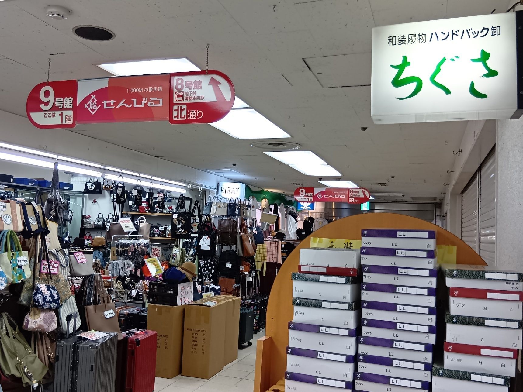 船場センタービル内にある草履専門店「ちぐさ」さんは、草履の履きやすさにこだわり、一人ひとりの足に合わせて鼻緒を調整してくれるのが特徴で、着物好きの間でもよく知られています。