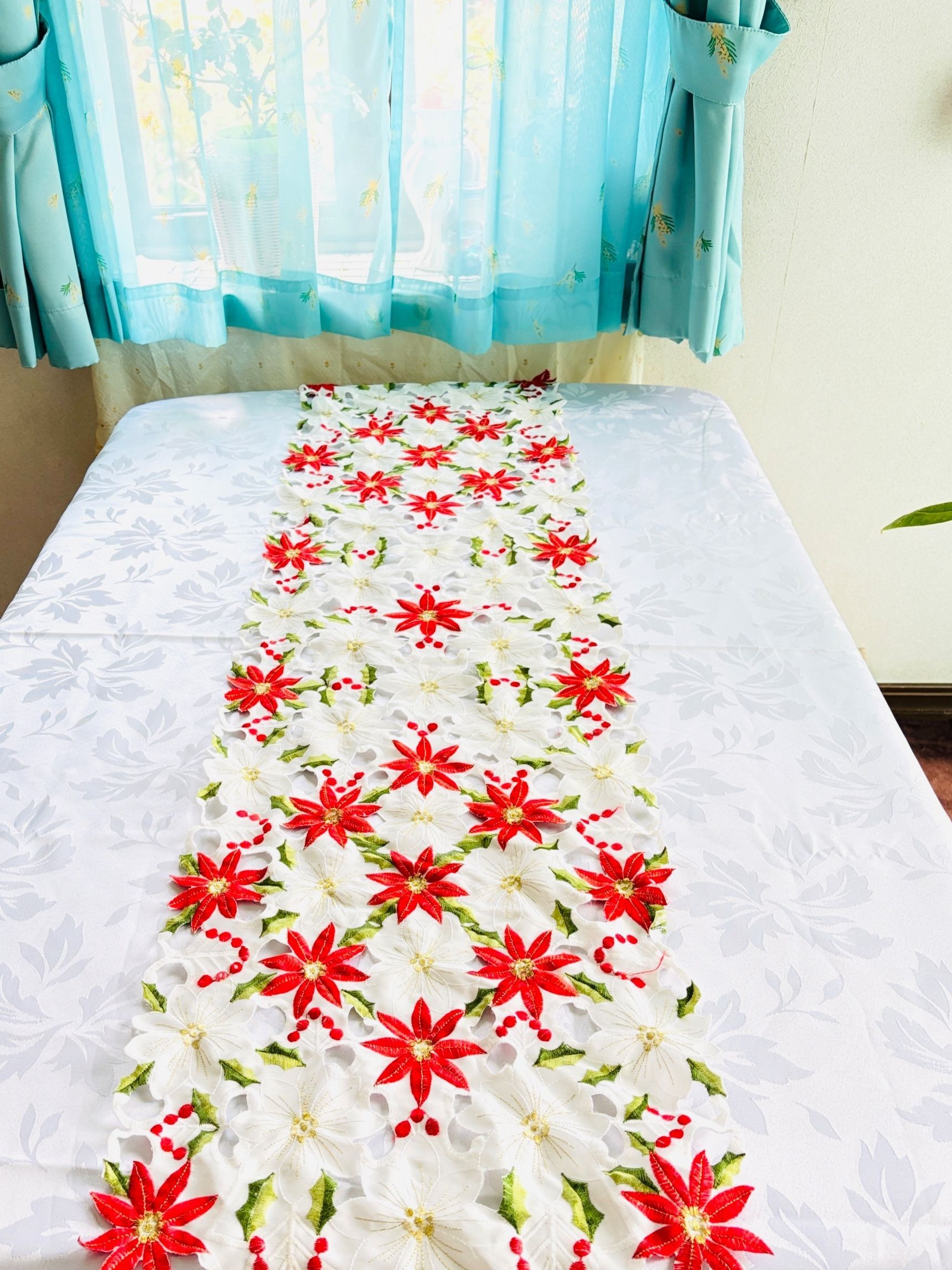 ベースが白なので、合わせやすいですよ。花柄クロスをテーブルのセンターに合わせれば華やかになりますよ。