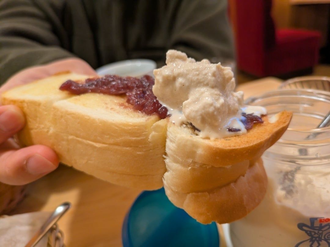 モーニングセットの小倉あんトーストに『コーヒーシェイク』をのせてみると…