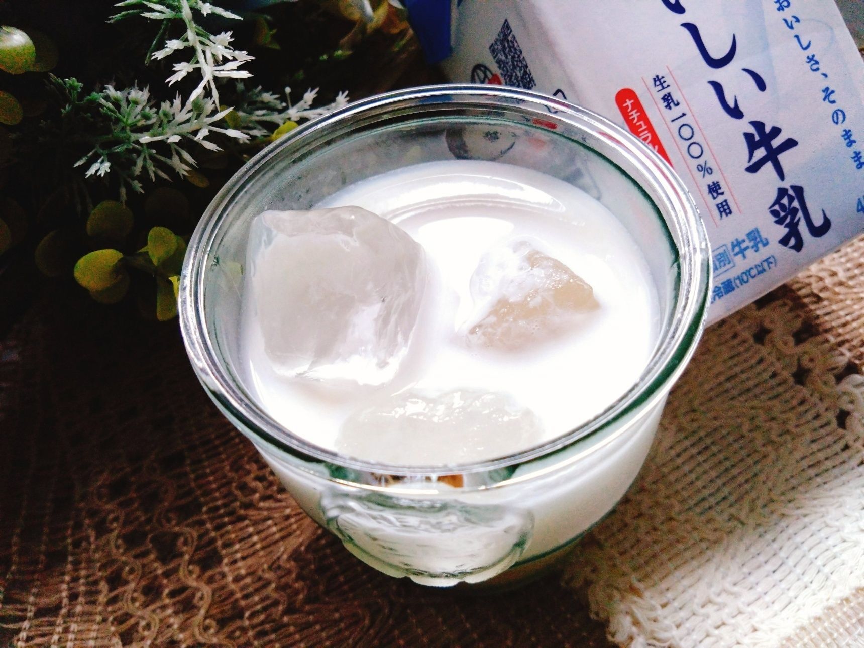 氷を入れたグラスに牛乳と甘酒を入れて混ぜて完成。