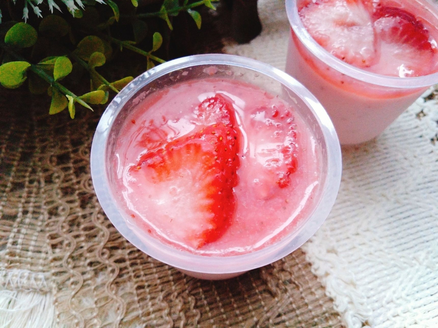 1.ミキサーなどにいちご、はちみつを入れて滑らかになるまでかくはんし、50g取り分ける。