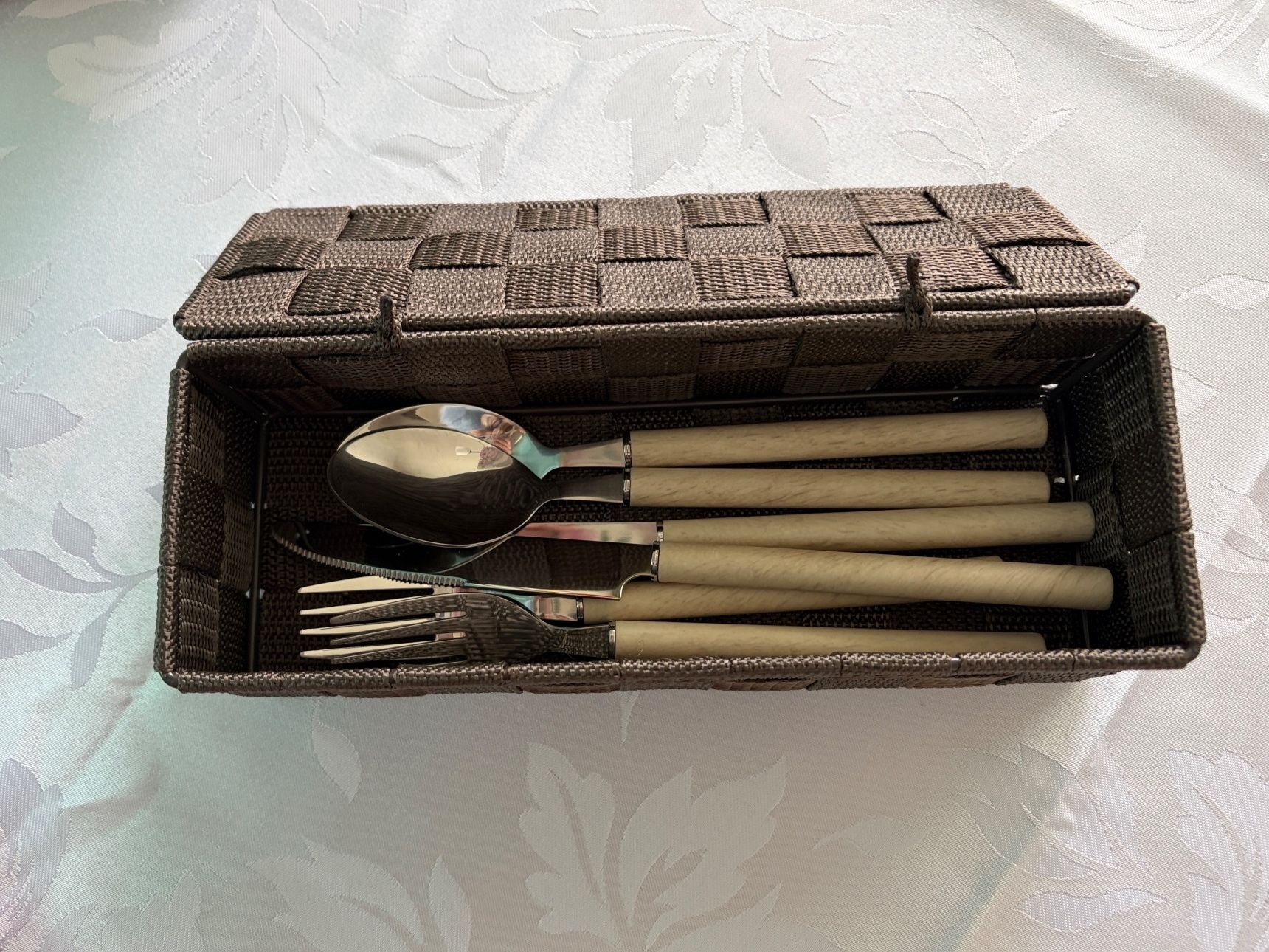 カラトリー専用収納の中ではセンス抜群!飽きのこないデザインです。たくさん入りますよ。