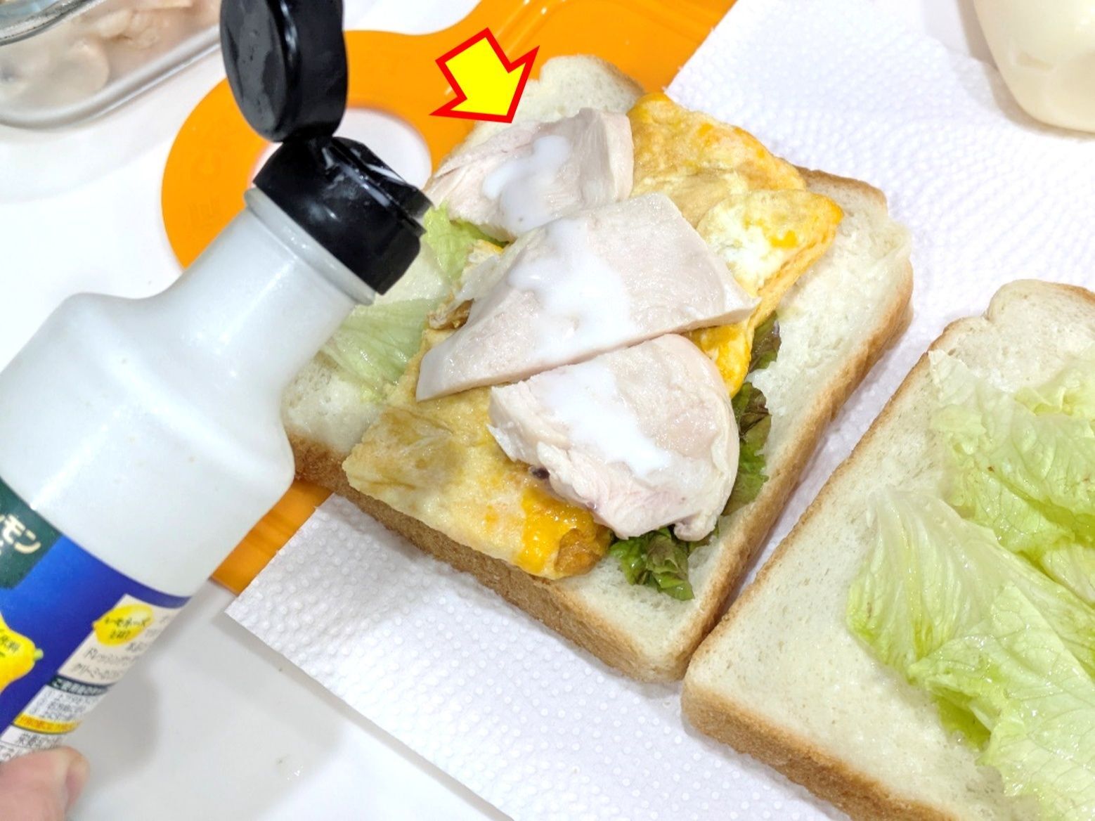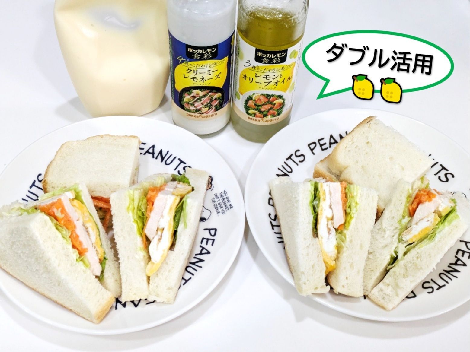 食パンにマヨネーズと『ポッカレモン食彩 クリーミーレモネーズ』を塗り具材にも『ポッカレモン食彩 クリーミーレモネーズ』を追加でかけちゃいました!