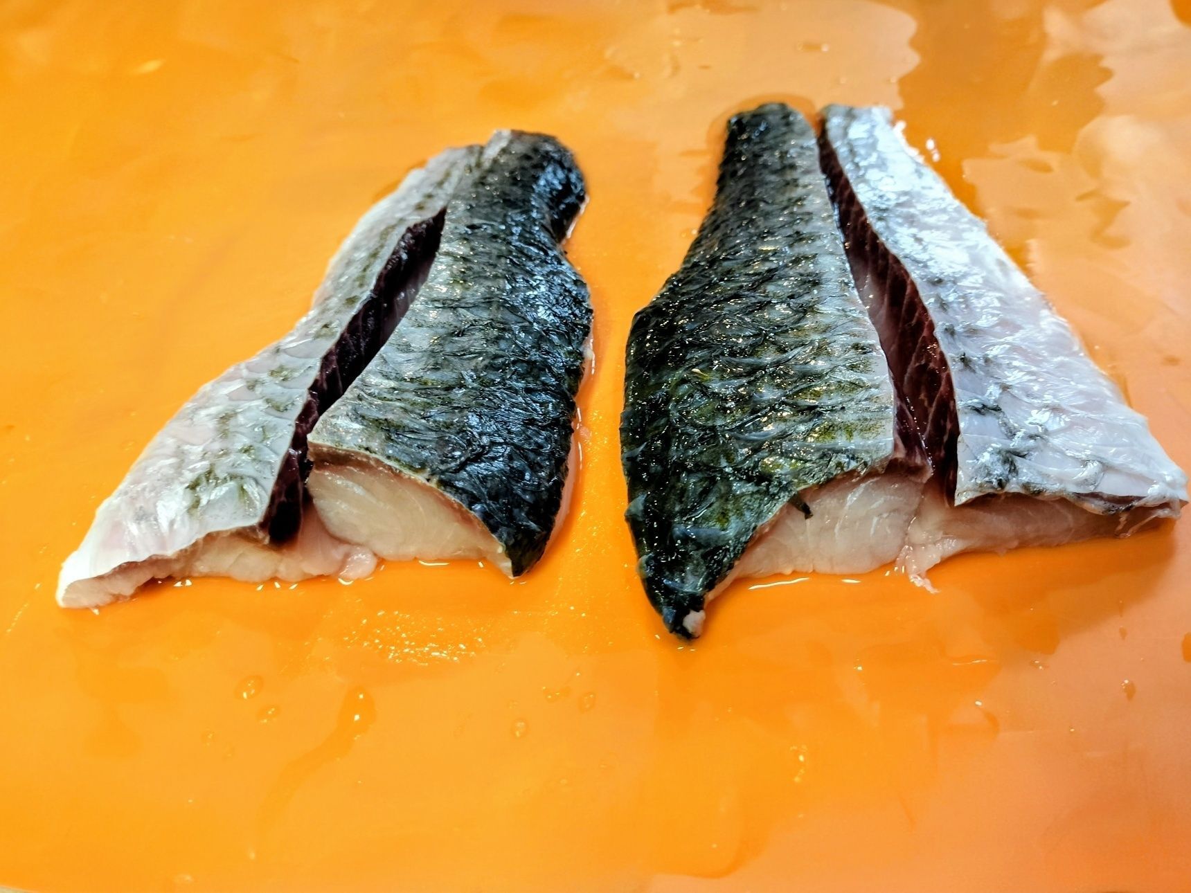 (今回使用したボラの身は、前回捌いた切り身を冷凍保存しておいたものを解凍して使用しています)