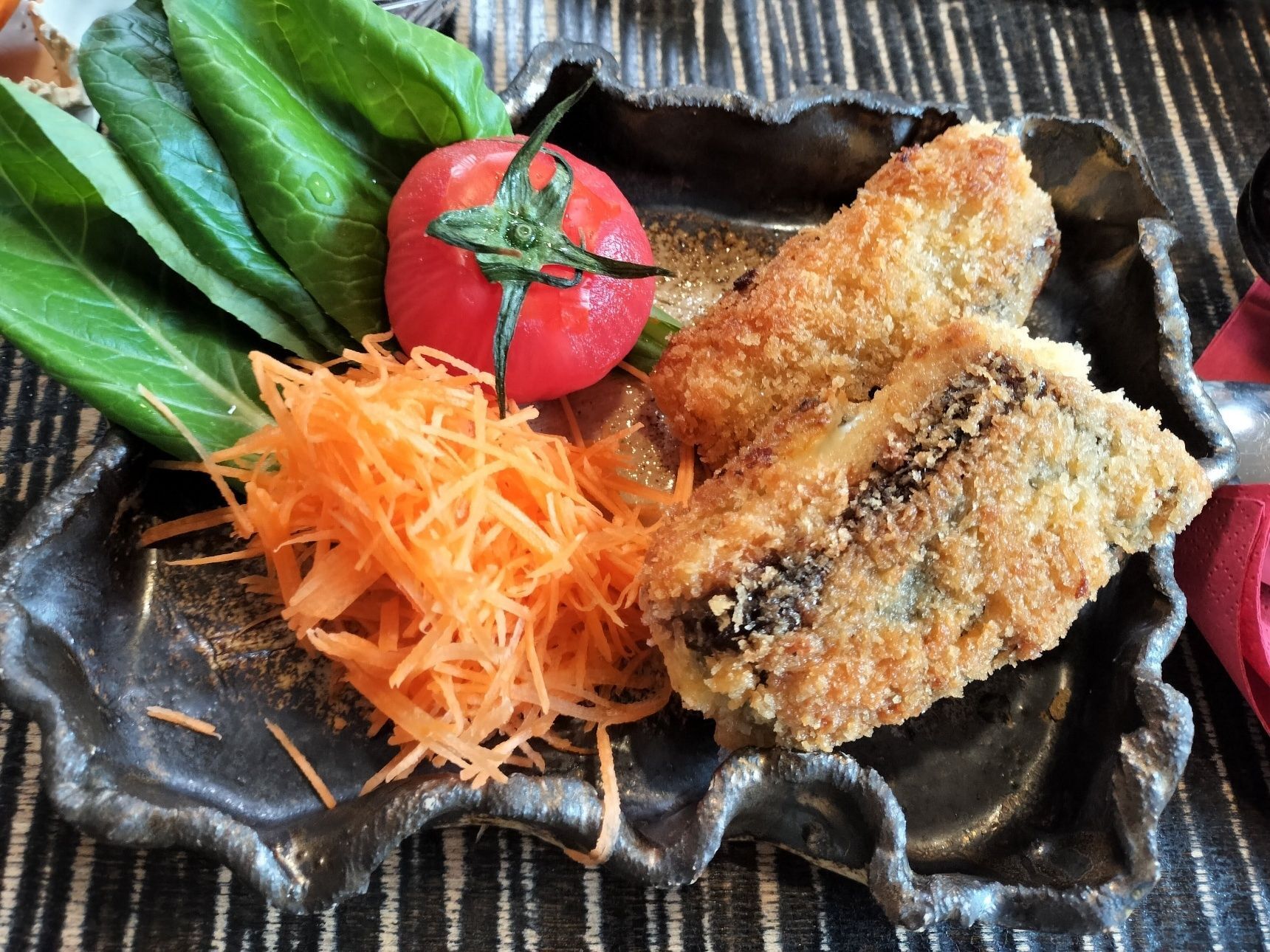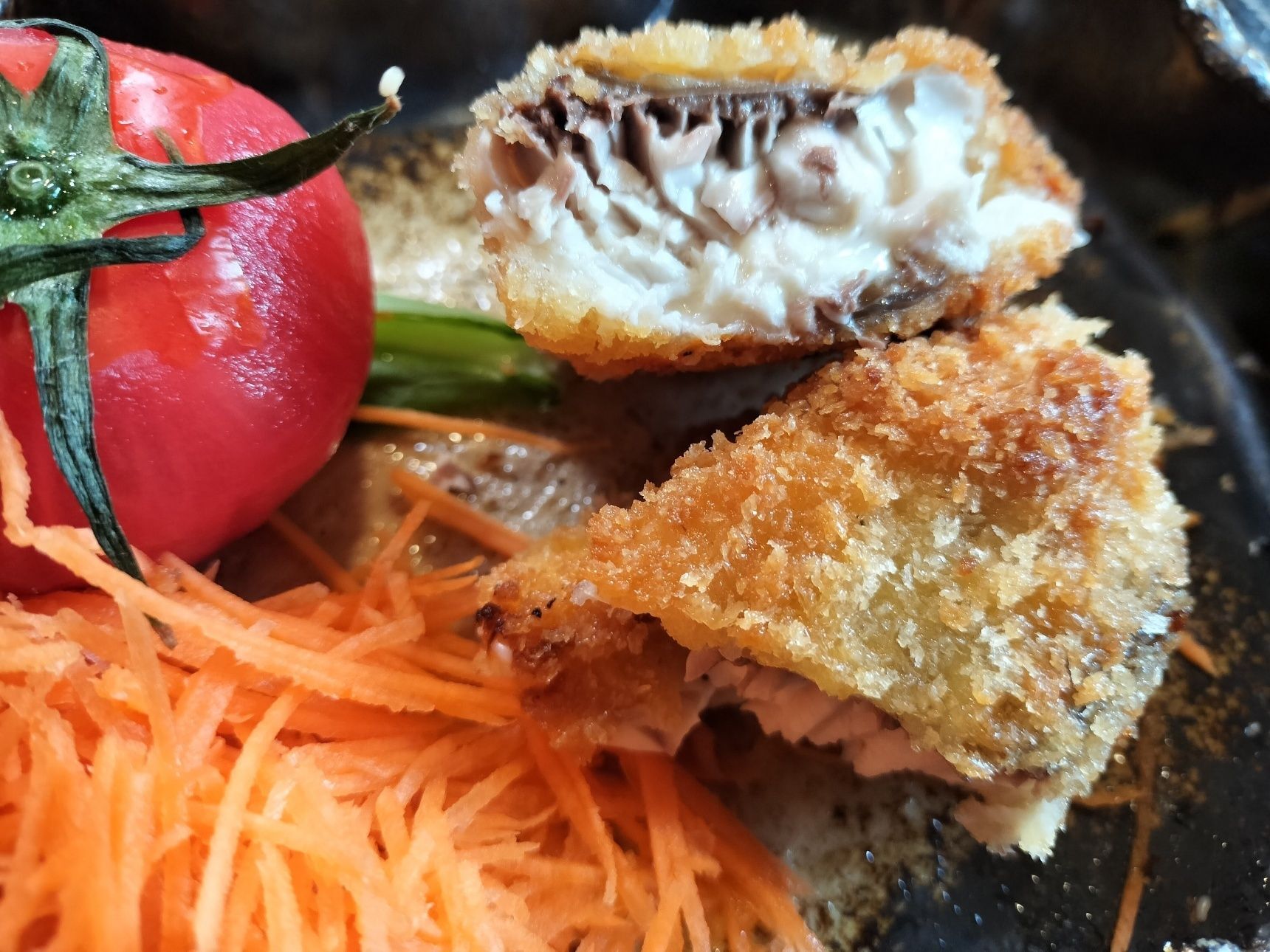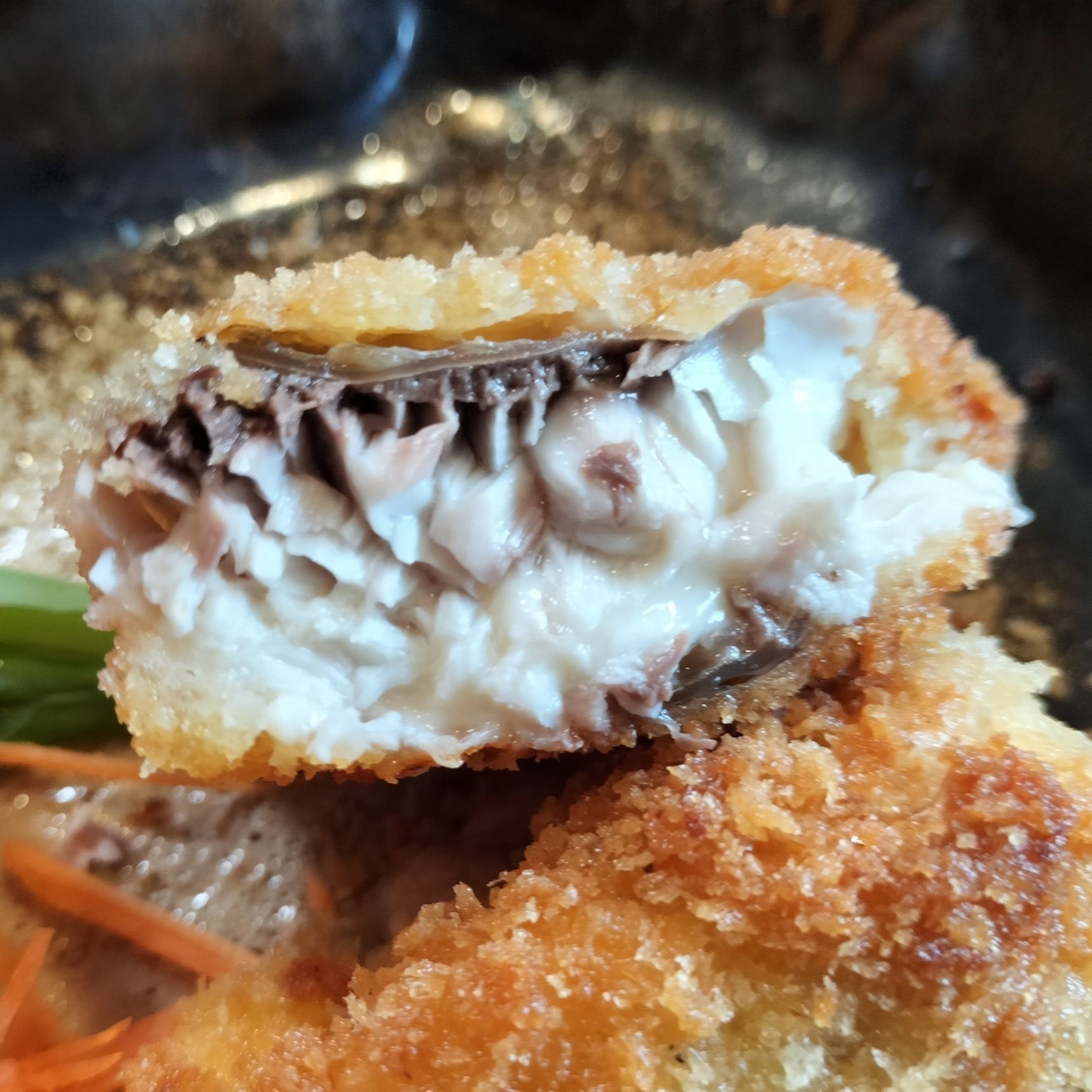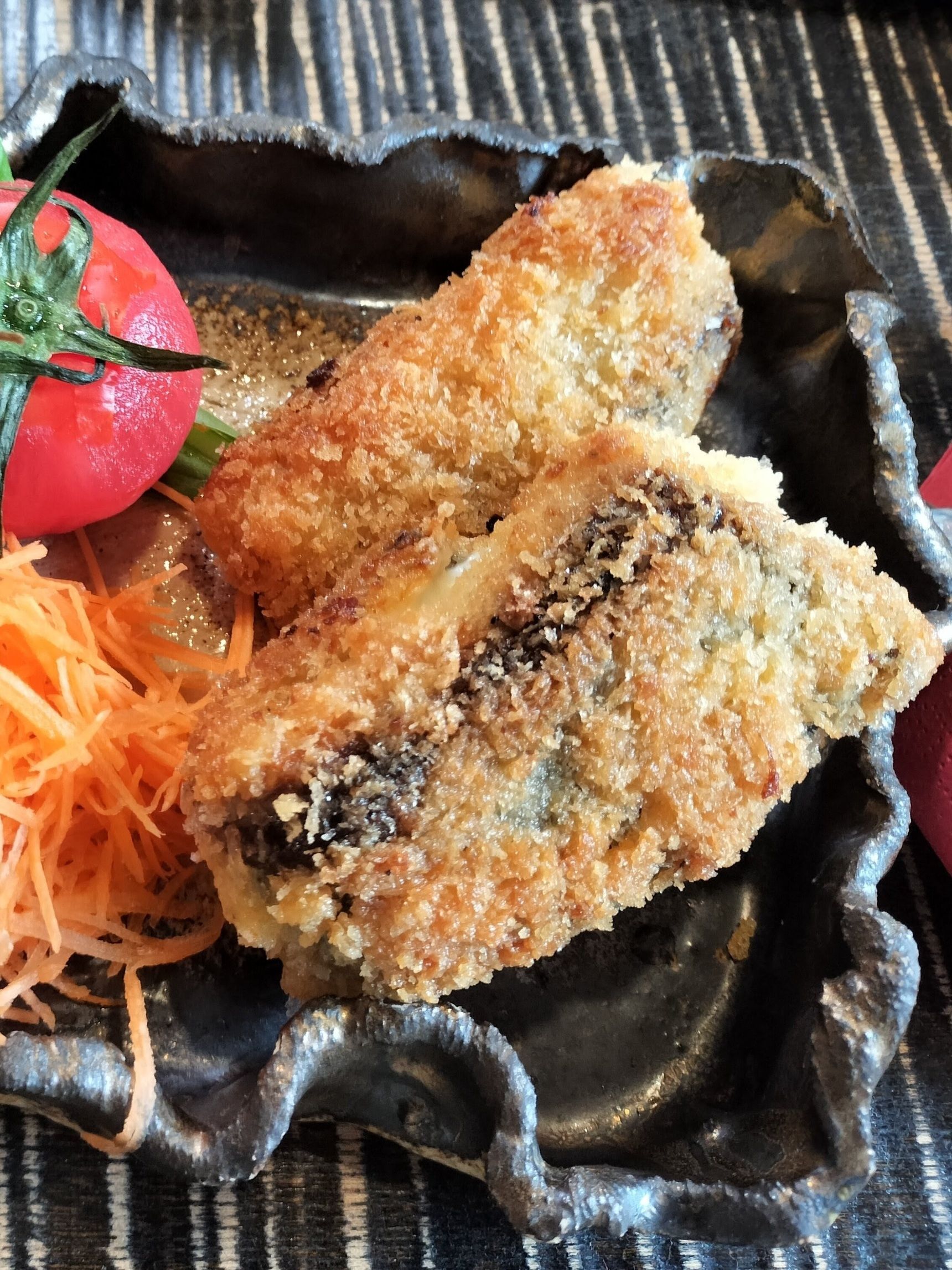 びっくりするくらいしっとりふわっふわっのボラの身・香味広がるスパイス塩・とろ〜りチーズ・こんがりサクサクの衣・タレが相まって絶妙な味わい!