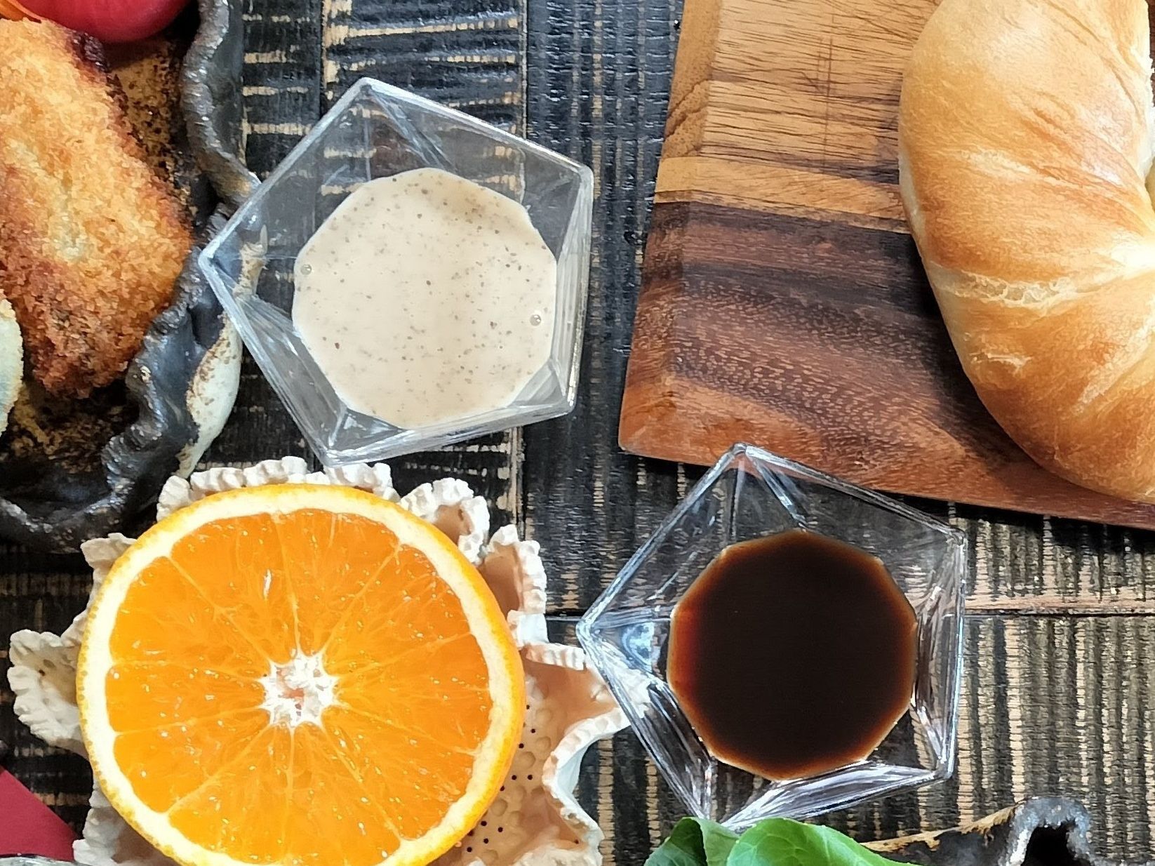 熱々のボラフライに、中濃ソースと胡麻ドレッシングをつけて、いただきまーす!