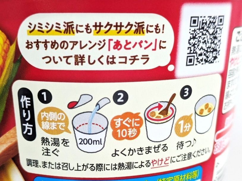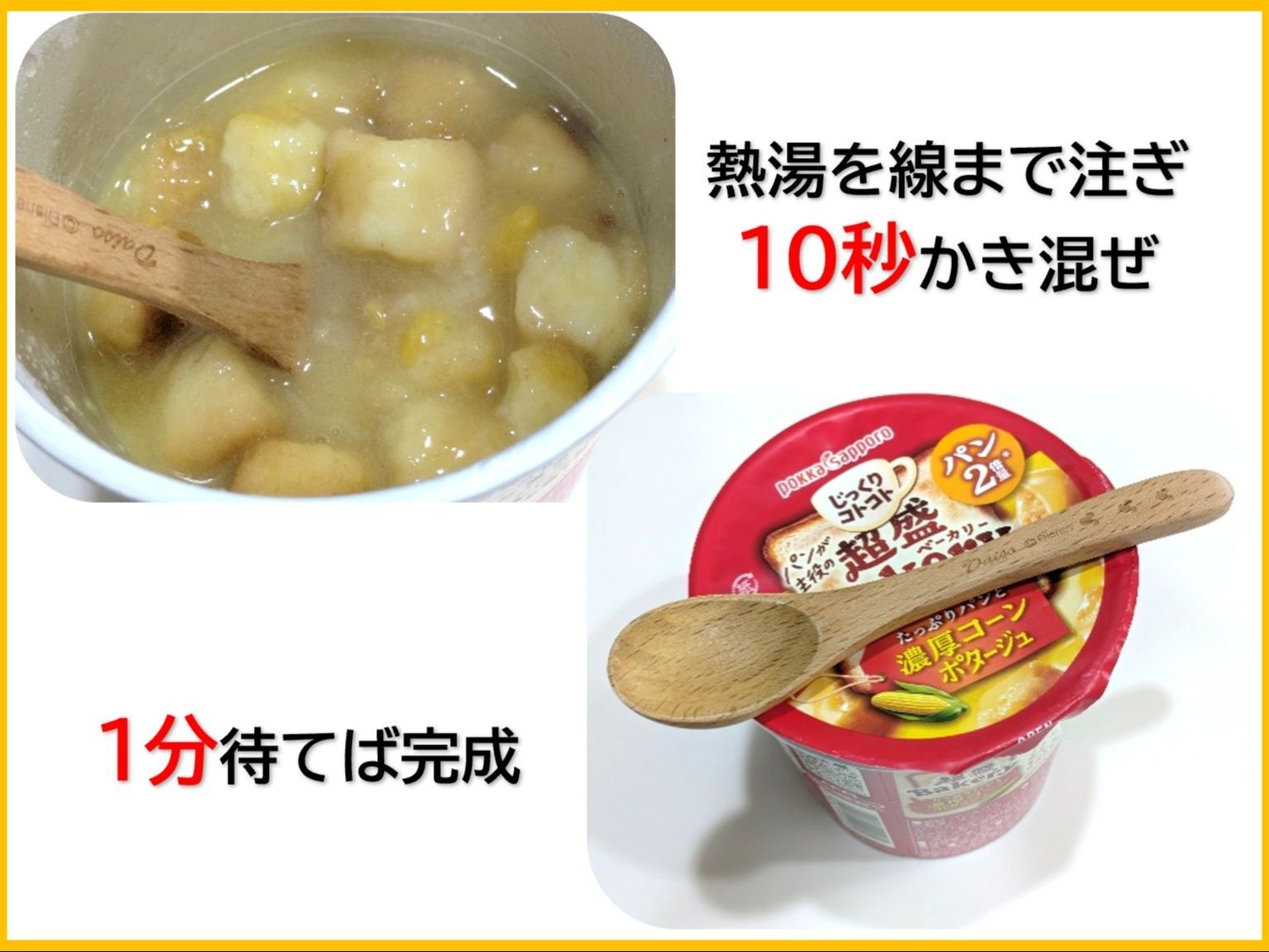 熱湯を注ぎ10秒スープをかき混ぜ1分待ちます。