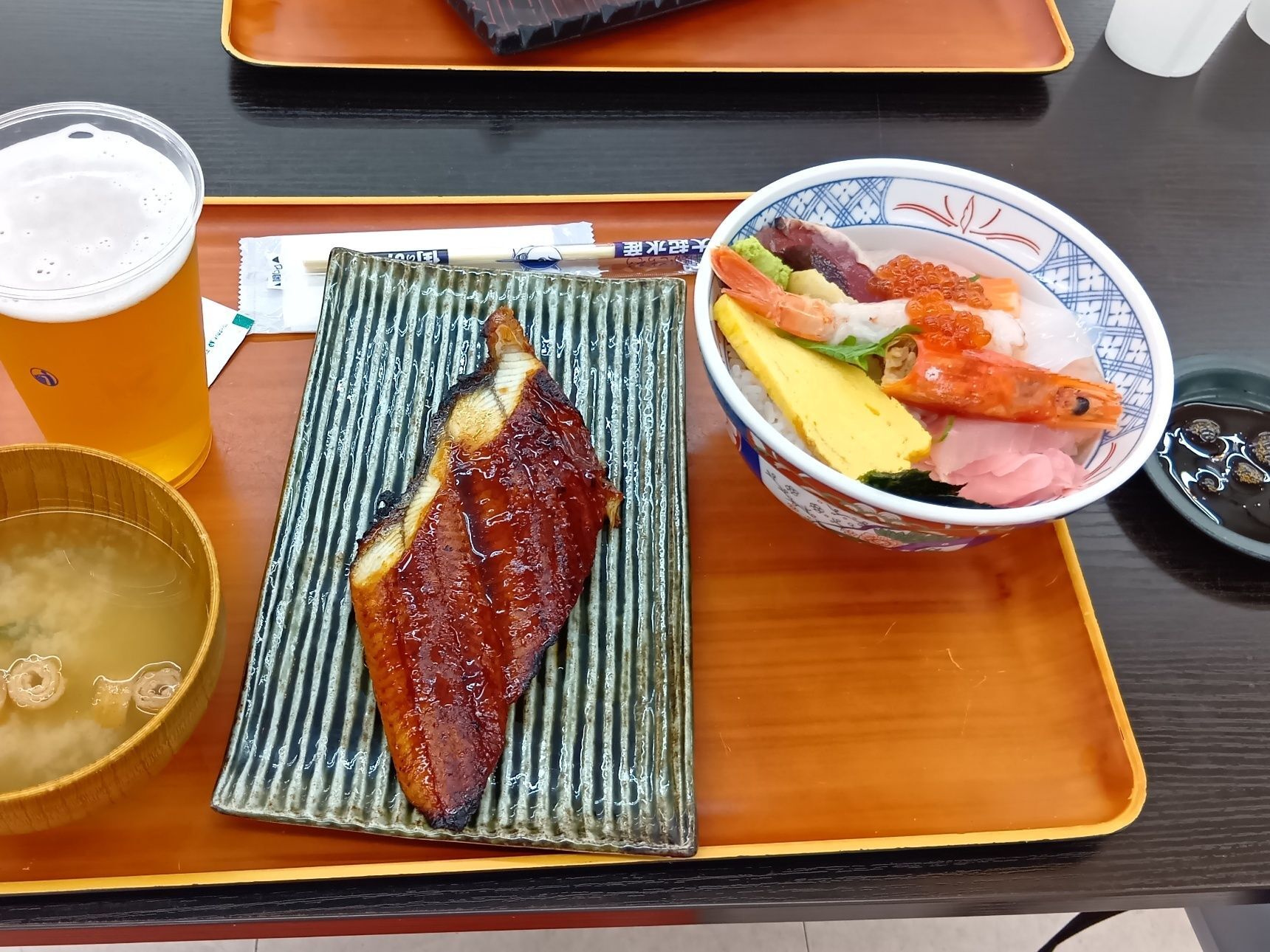 お連れさんのうなぎの蒲焼も半分シェア! ビールと一緒にいただくと、もう最高の組み合わせでした!