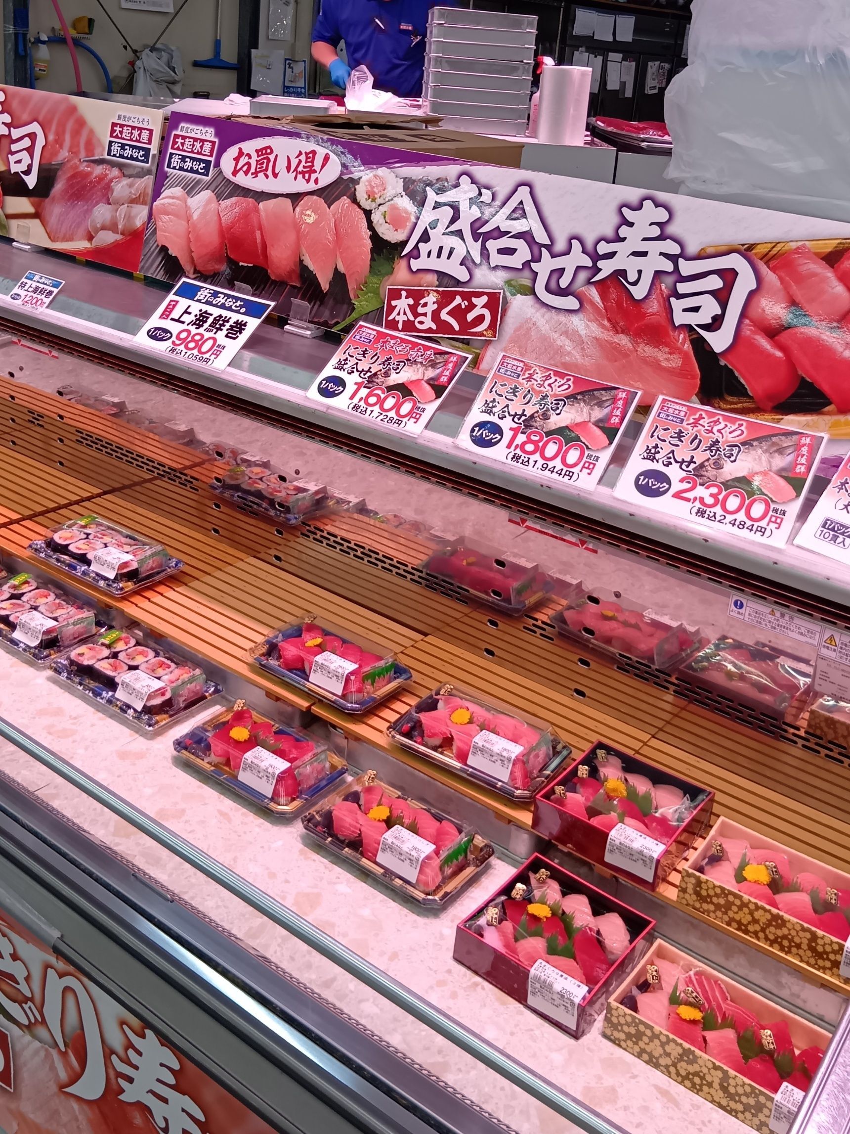 鮮度抜群の天然魚を寿司にできるのも売り場を見れば、納得!鮮度抜群の天然魚がたっくさん、並んでいますよ!